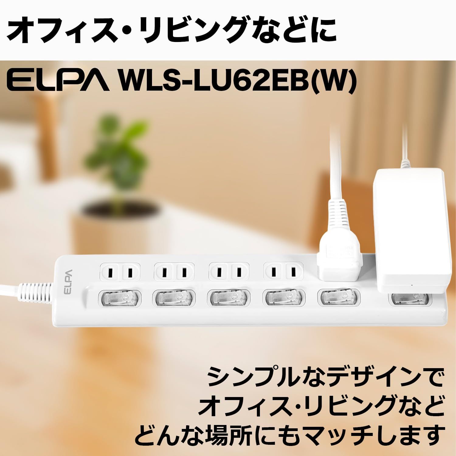 【特価セール】2m 6個口 上差し LED WLS-LU62EB(W) 延長コード コンセント スイッチ付タップ (ELPA) エルパ
