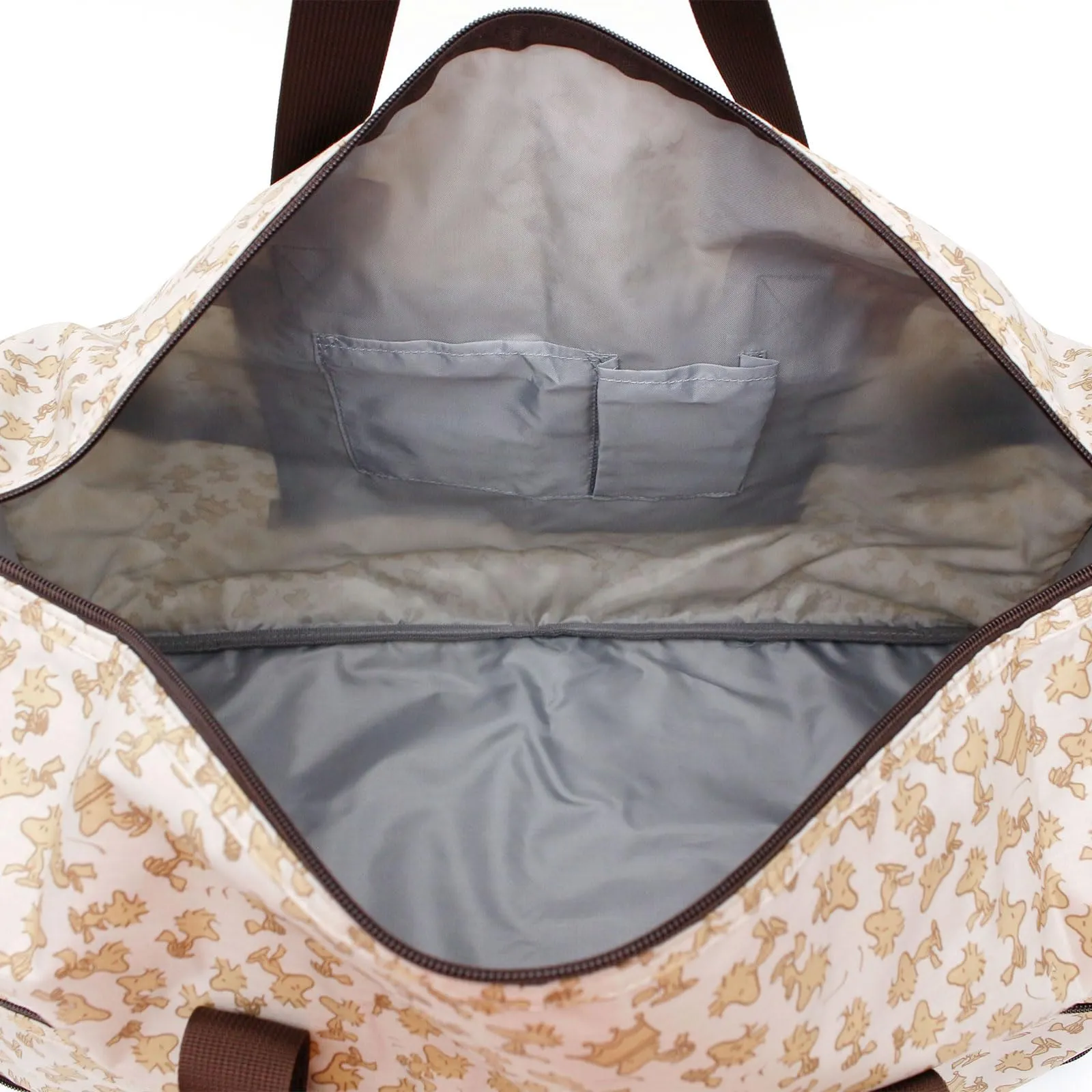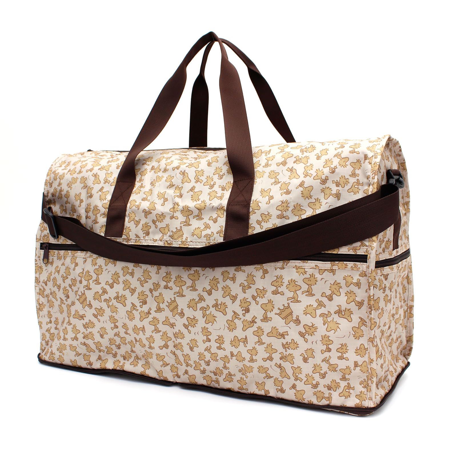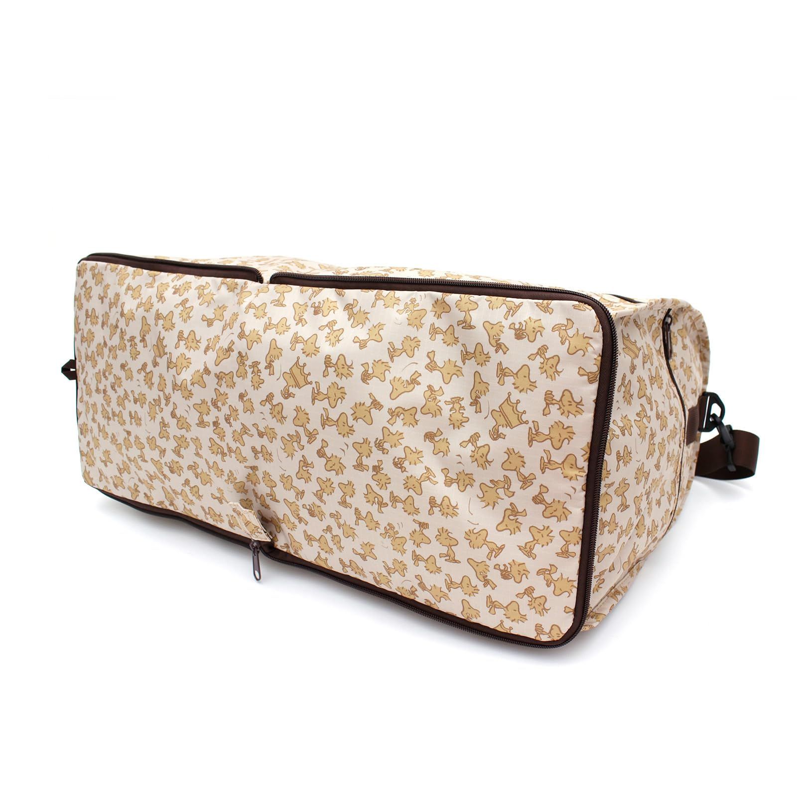 遊び心のあるプリント生地を使用した2WAYボストンバッグです。 コンパクトに折りたたむことができるから持ち運びしやすく、サブバッグにもぴったり。 付属のストラップを装着すればショルダーにアレンジできるので、長時間の移動や両手をあけたい時にもおすすめ。 背面にはキャリーバー通しがあるので、カートの上に取り付けることができます。 1泊程度の旅行はもちろん、ジムなどさまざまなシーンで活躍してくれそう。