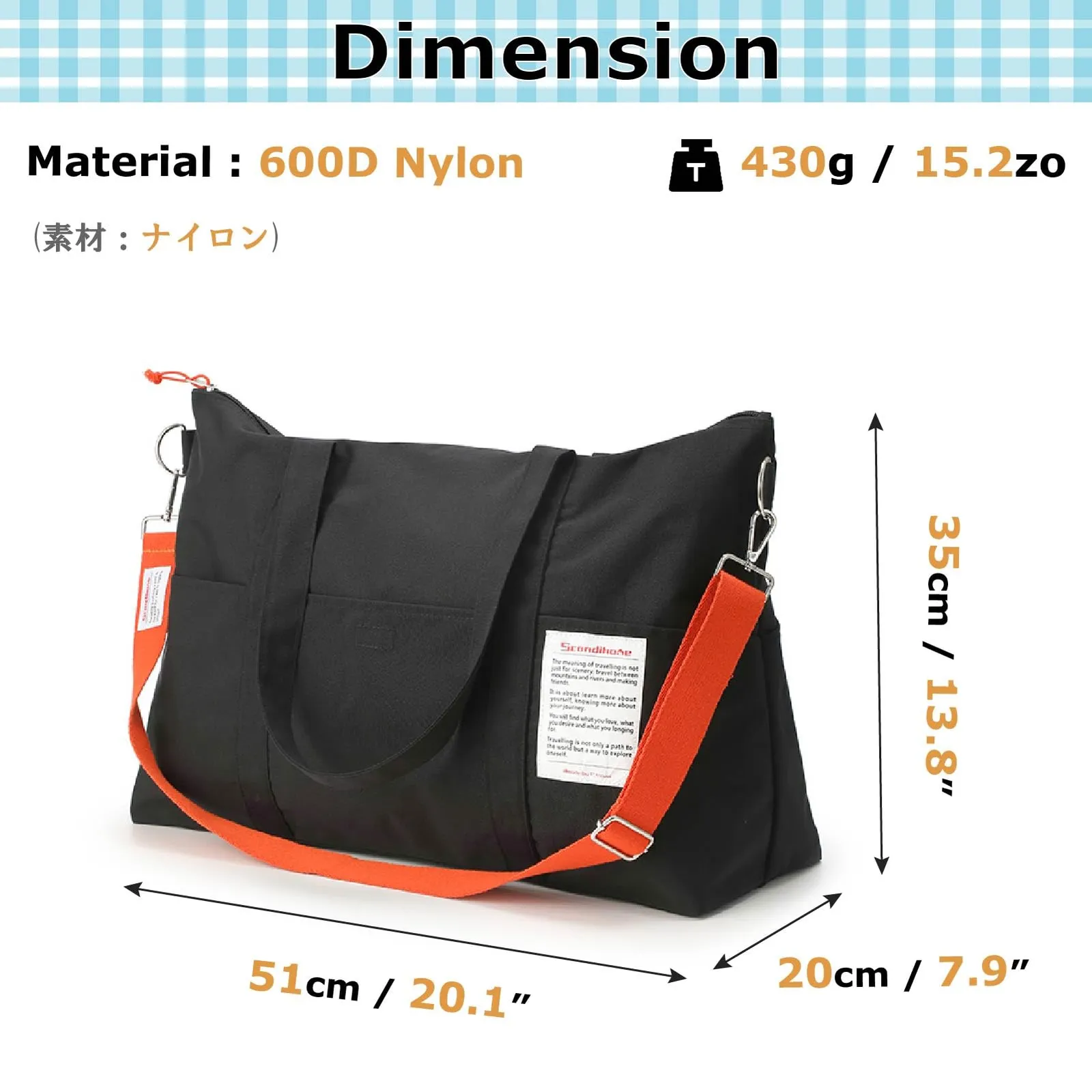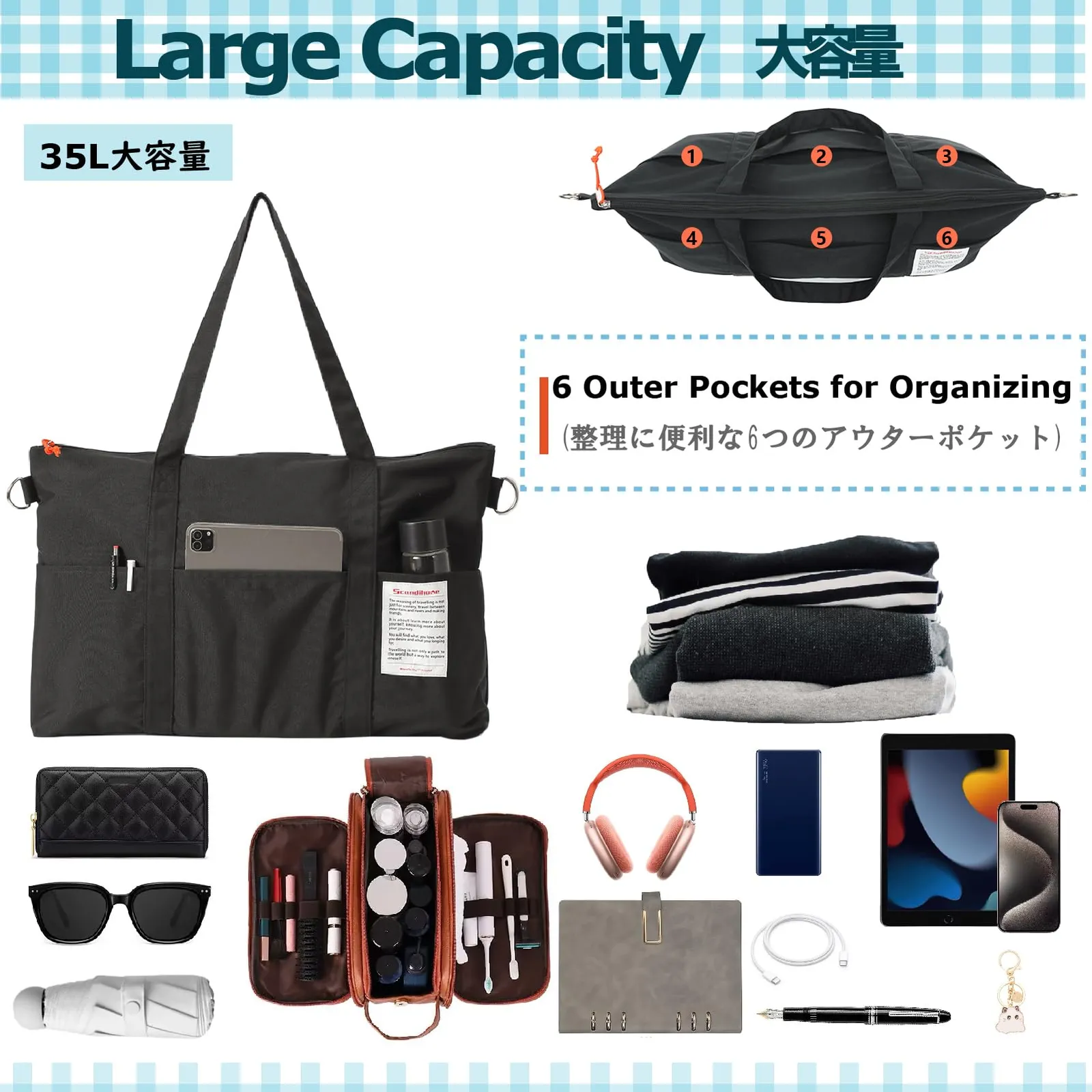 【大容量】サイズ:51×20×35cm、容量:35L。6つの外部ポケットがあり、鍵、傘、ヘッドフォン、携帯電話などの物を置くのに便利で、取り出しやすい。パスポートなどの証明書を収納するための内蔵ポケットも備えています。 ?
