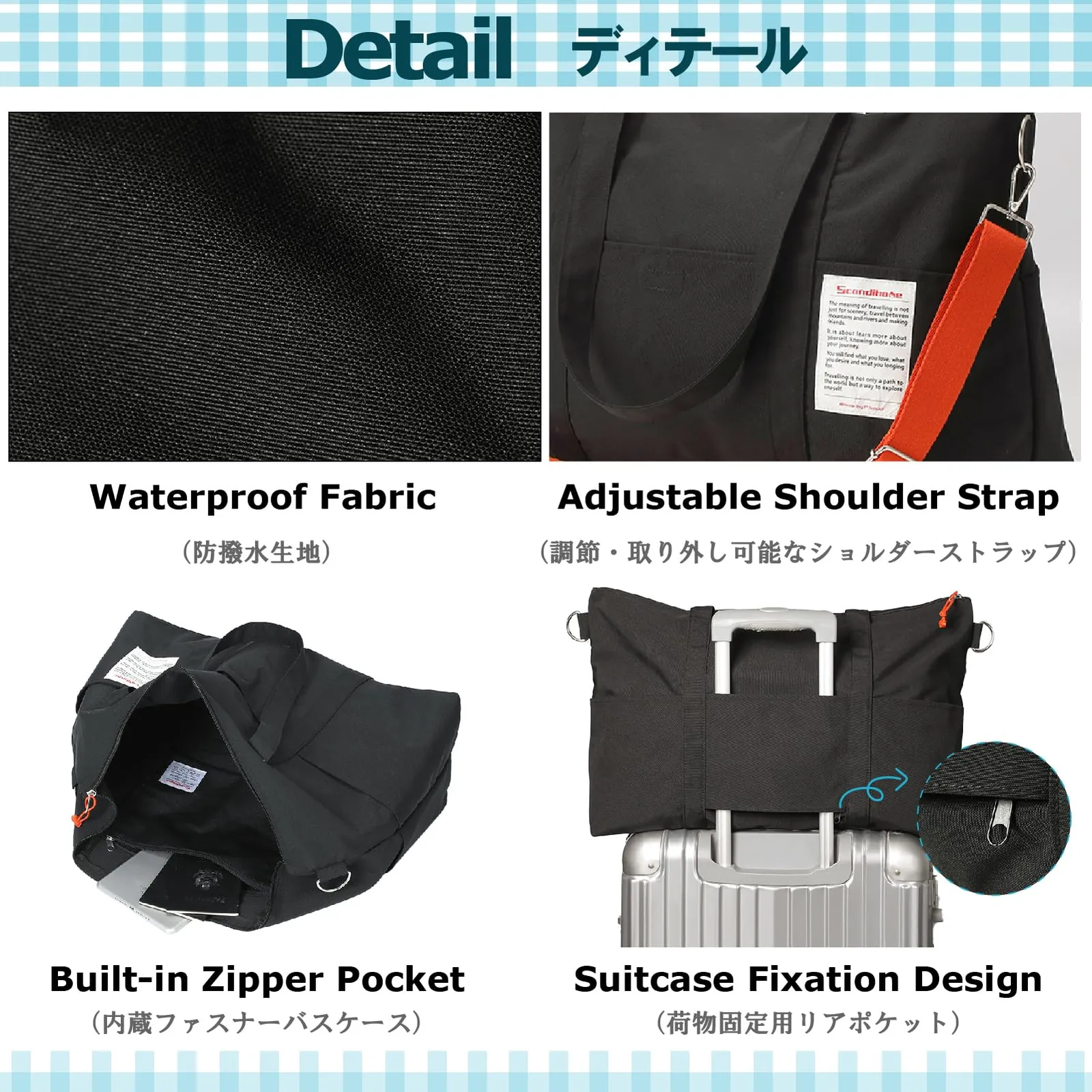 【3wayバッグ】手提げ、ショルダー、スーツケースのハンドルにかけられます。荷物を軽減し、持ち運びがしっかりして便利です。飛行機に持ち込めます。 ?