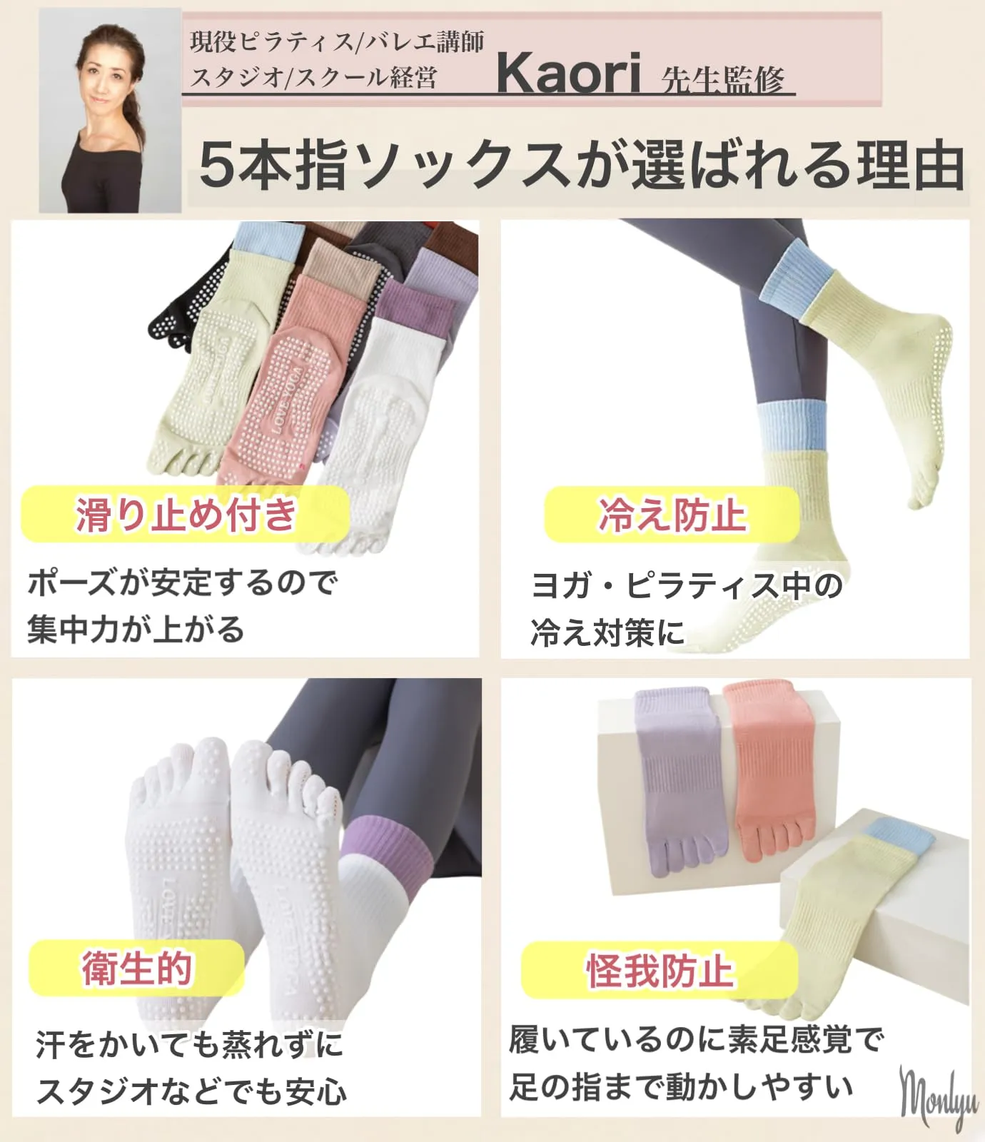 [Monlyu] ヨガソックス 5本指 滑り止め レディース ピラティスソックス ヨガ 靴下 抗菌防臭 ロング ピラティス スポーツ トレーニング グリップ ソックス すべりどめ ウェア 冷房対策 防寒対策 くつした くつ下 吸湿性 通気性 速乾