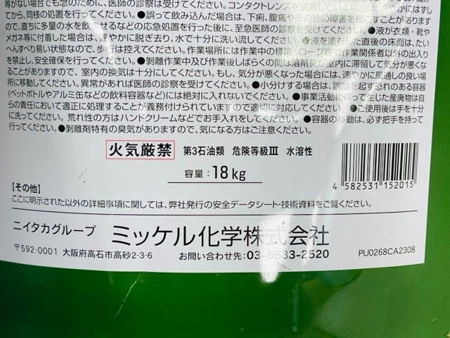 未開封 ハイパーリムーバー 剥離剤 ミッケル化学 リムーバー ワックス剥がし remover 容量18kg 保管品 /515657
