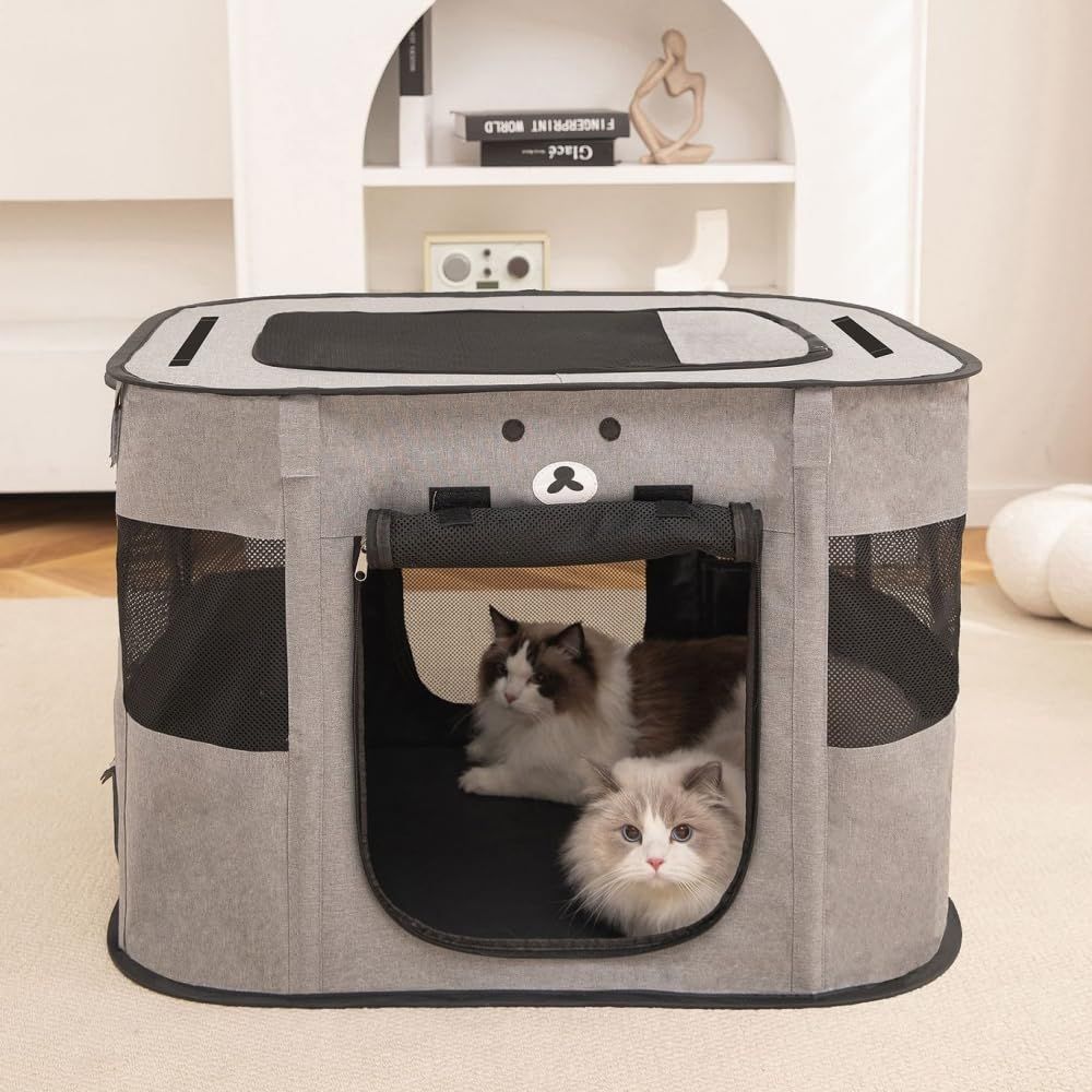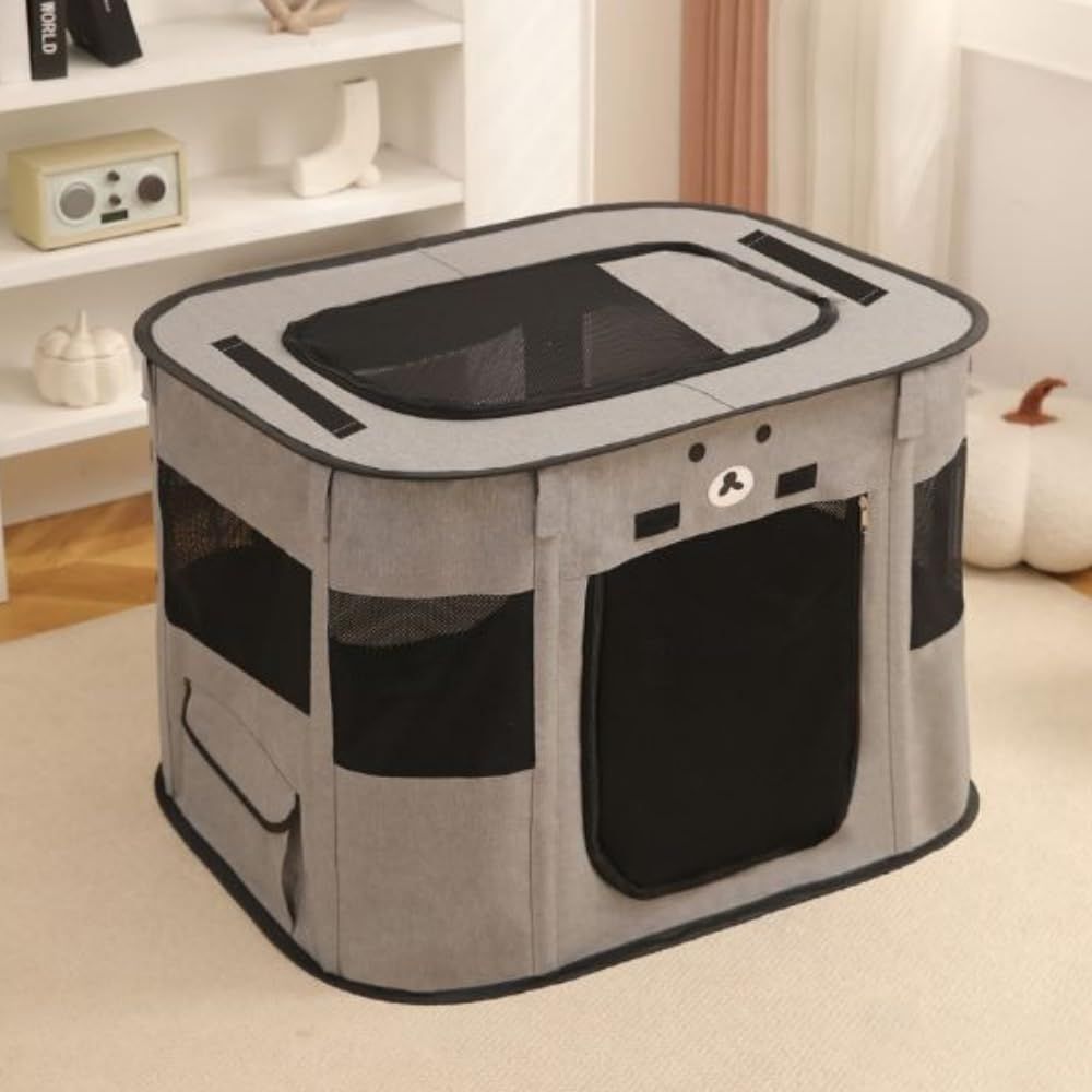 長方形 折りたたみ式 ペットサークル 収納バッグ付き 猫 犬用 ケージ 組み立て簡単 屋根付き メッシュサークル コンパクト 出産用 防災 軽量 室内室外兼用 (M(80*60*55cm), ライトグレー)