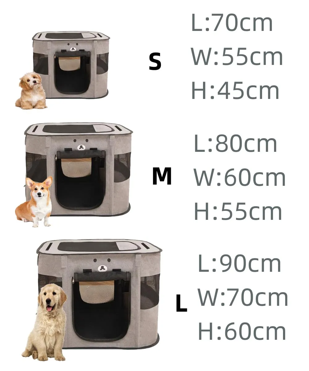 【商品仕様】サークル*1、支柱*8、キャリーバッグ*1、S:70*55*45cm(組み立て)、重さ:900g;M:80*60*55cm(組み立て)、重さ:1120g;L:90*70*80cm(組み立て)、重さ:1240g;材質:600Dオックスフォード/スチール ??