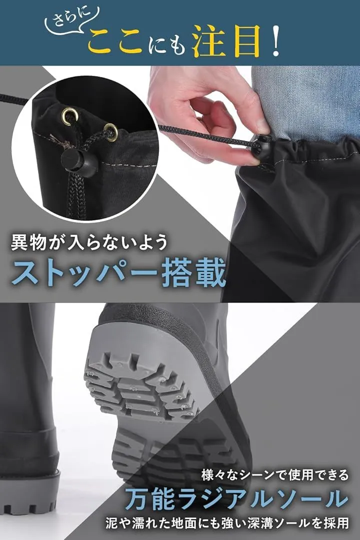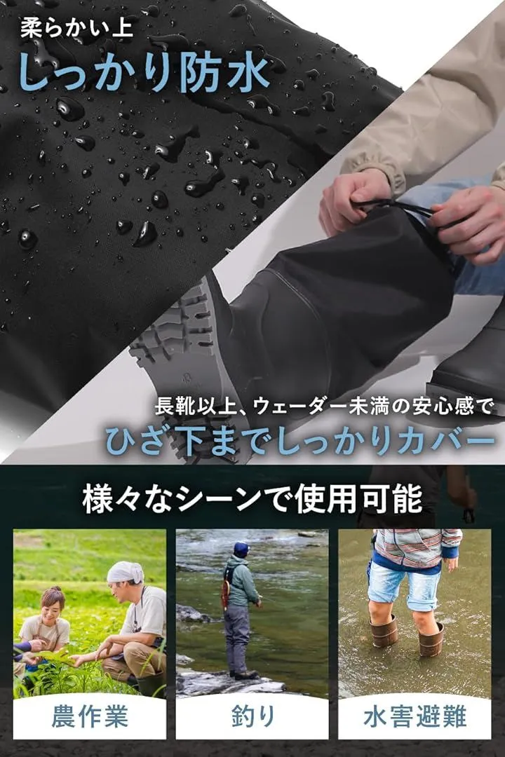 PVC素材で防水性が高く、浅瀬の釣りや農作業、水害時の避難用など多用途で使えます。