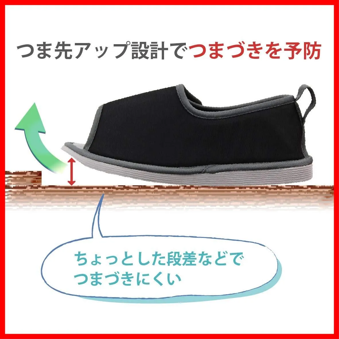 竹虎 転倒予防シューズ つま先なし ブラックLサイズ