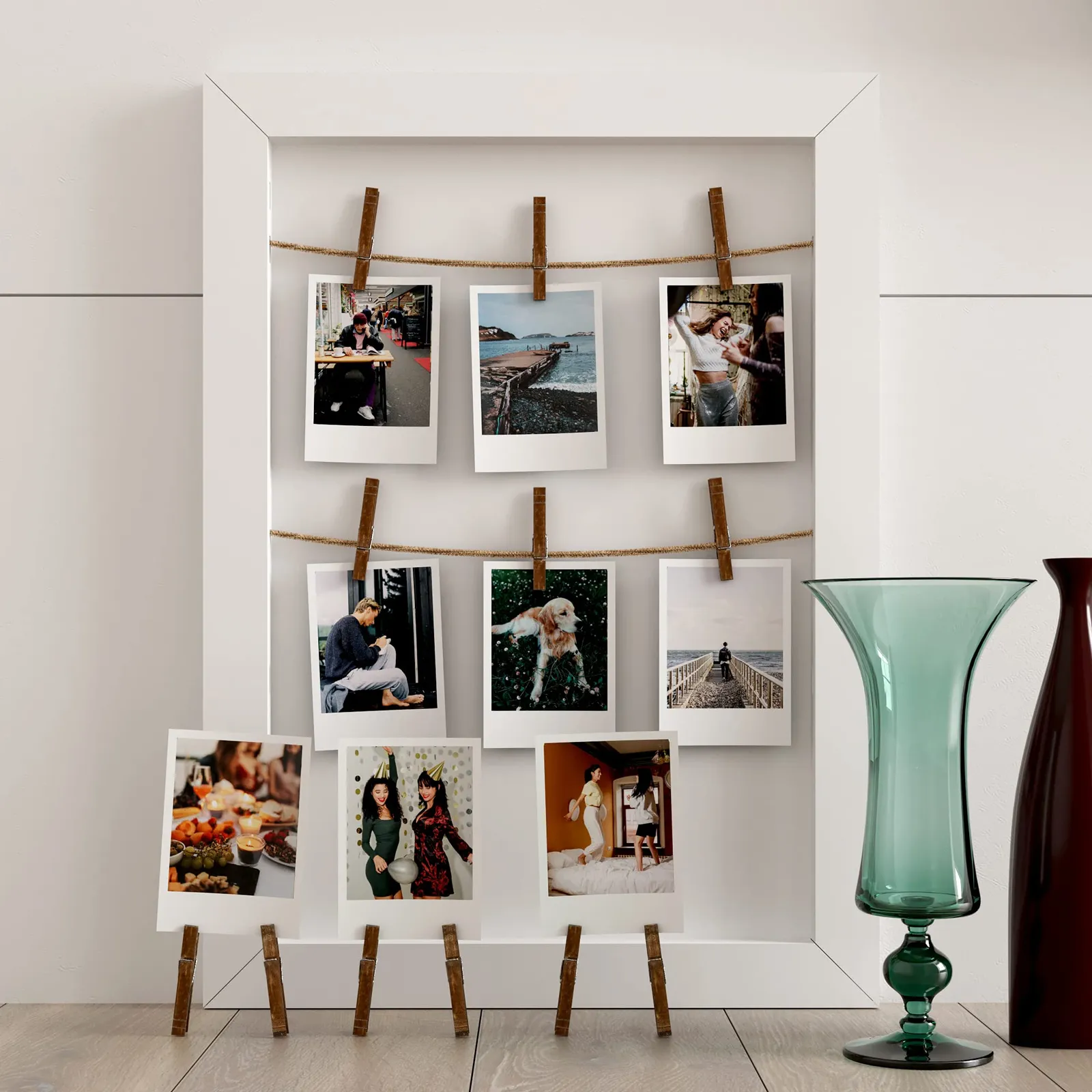 洗濯バサミは、カラー塗装仕上げで、天然木で作られています。