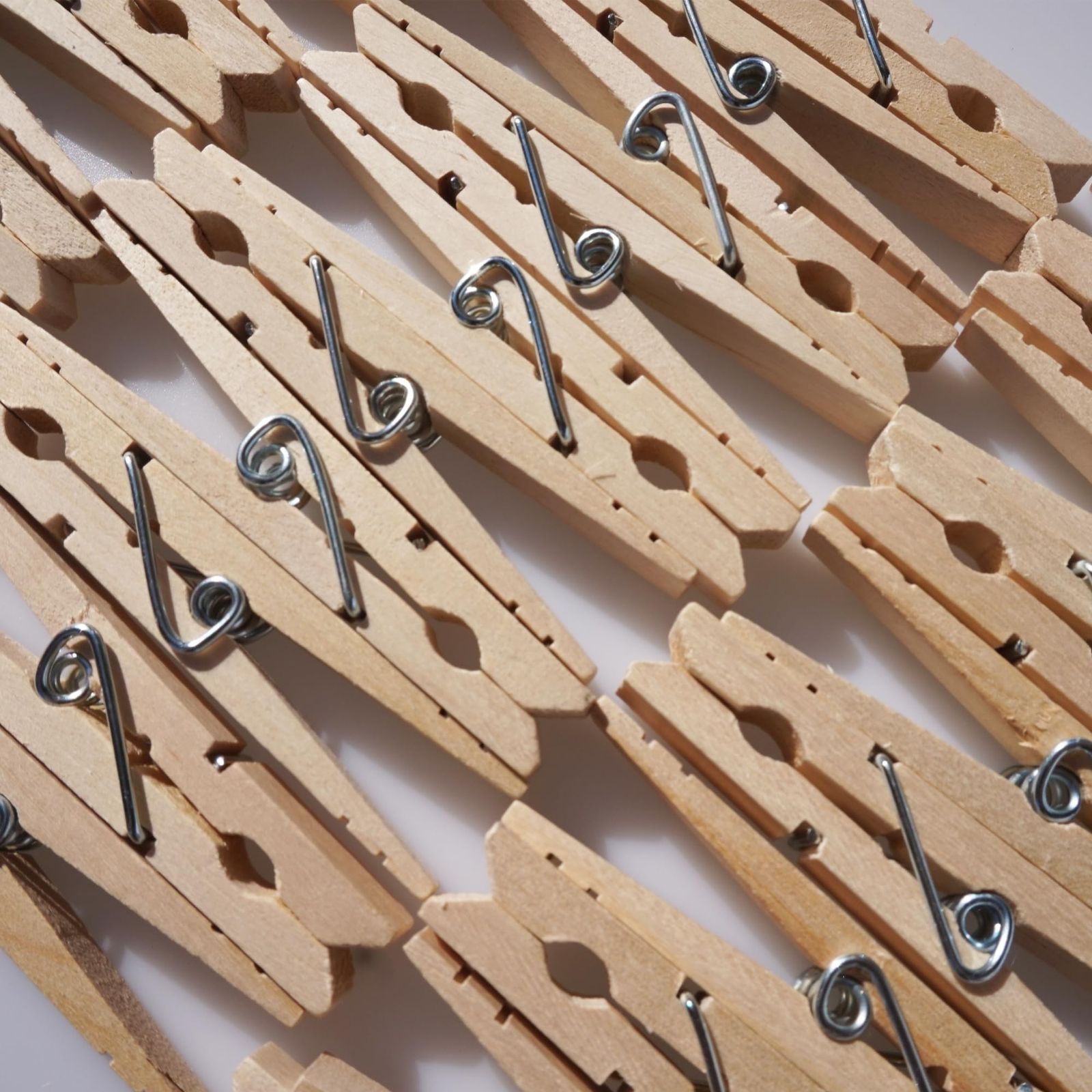 ナチュラルバーチウッド製。パックあたり30個洗濯バサミ。