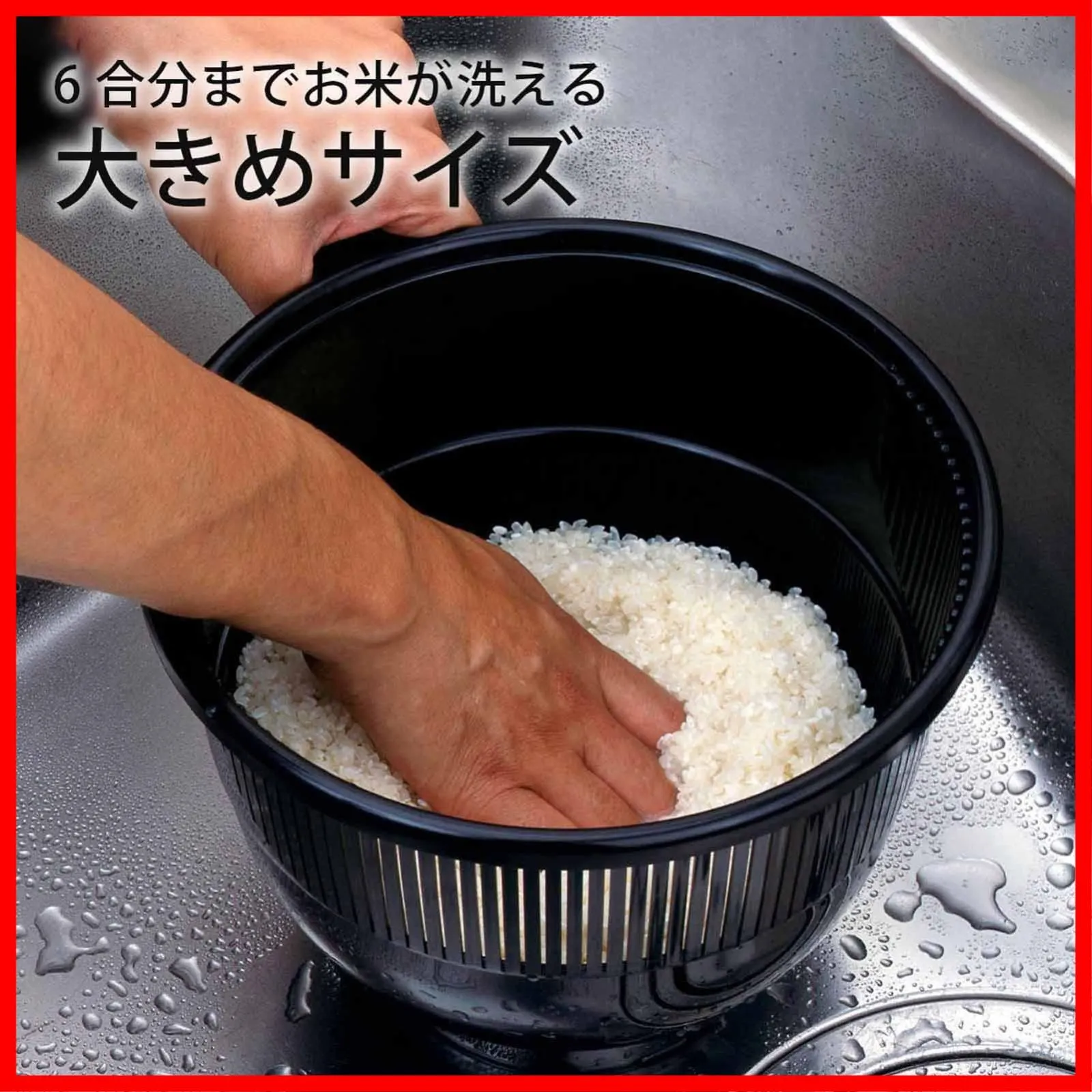 下村企販 米磨ぎボウル 6合 【日本製】 内側はすり鉢状 あふれにくい 水切り穴付き 移し替えやすい取手付き とぎやすい 洗米カップ ザル 大容量 ブラック プラスチック 燕三条 24522