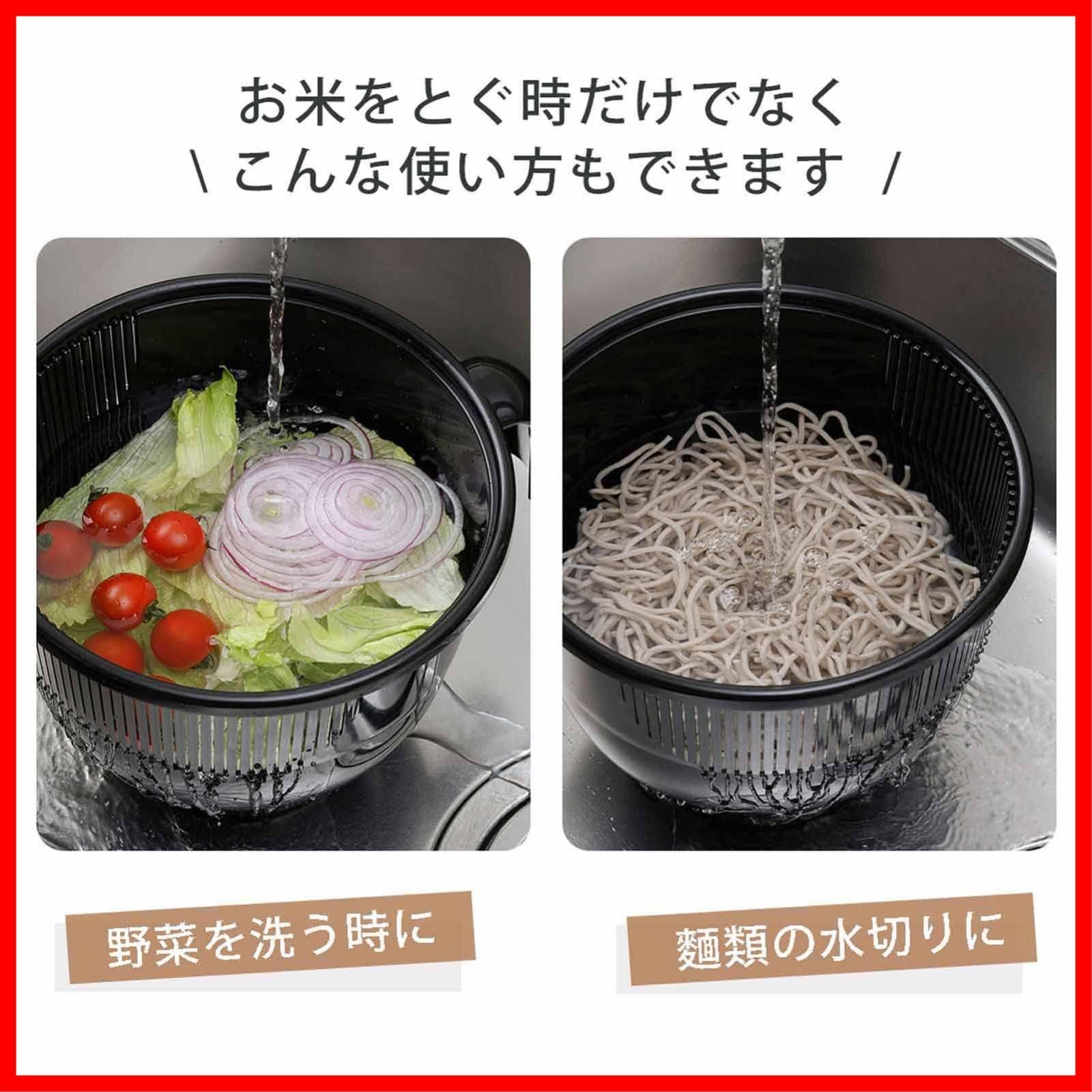 ●水切り穴から米は流れず、炊飯器への移し替えも簡単なハンドル付。約6合までお米がとげる ━━━━━━━━━