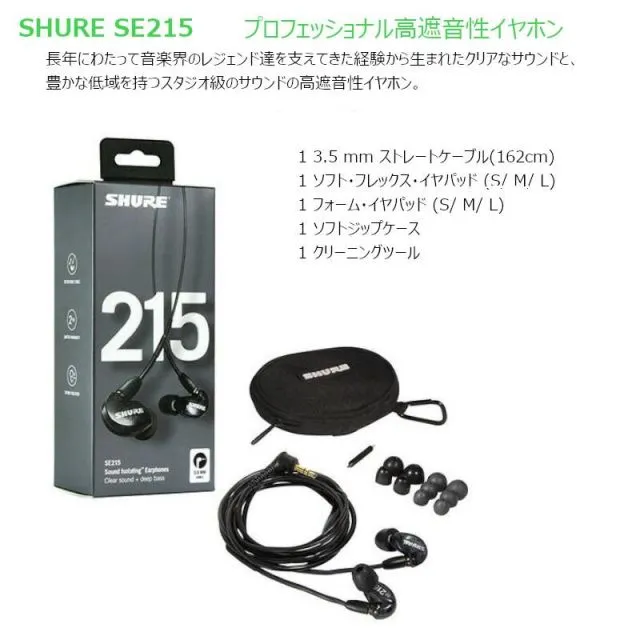 ・有線イヤホンSHURESE215-K-A(ブラック)カナル型高遮音性イヤホン