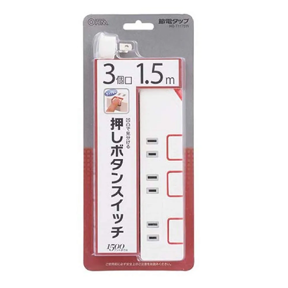 押しボタンスイッチ付き 節電タップ 3個口 1.5m [HS-T1175W]
