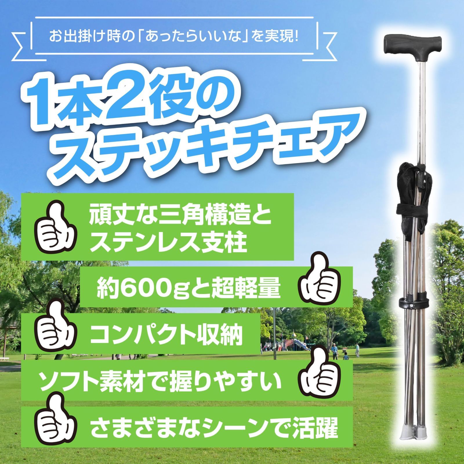 正規品 ステッキ チェアー ステッキチェア 自立式 座れる杖 折りたたみ杖 コンパクト 軽量 イス 椅子 三脚 歩行補助 介護 腰痛 休憩 旅行 アウトドア 釣り 運動会 敬老の日 お年寄り プレゼント
