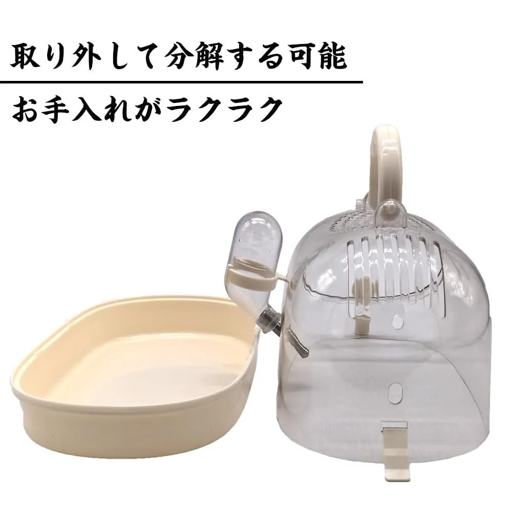 ハムスター キャリーケース 透明 小動物 キャリー ケージ 大きめ ジャンガリアン キンクマ お出かけ 持ち運び プラケース 移動 帰省 通院(給水器付き)