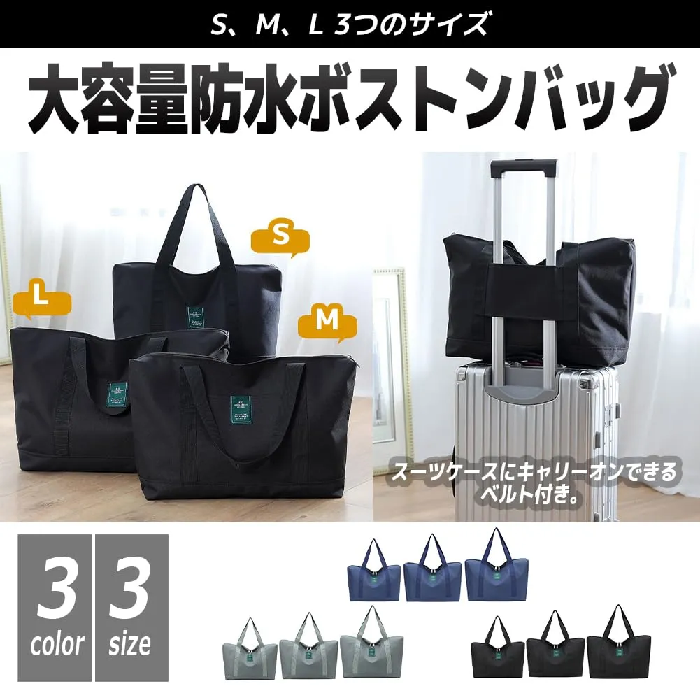 旅行、出張、スポーツジム、買い物など様々なシーンで大活躍の大容量防水ボストンバッグです。スーツケースにキャリーオンできるベルト付き。大中小3つのサイズからお選びいただける軽量のトラベルバッグです。
