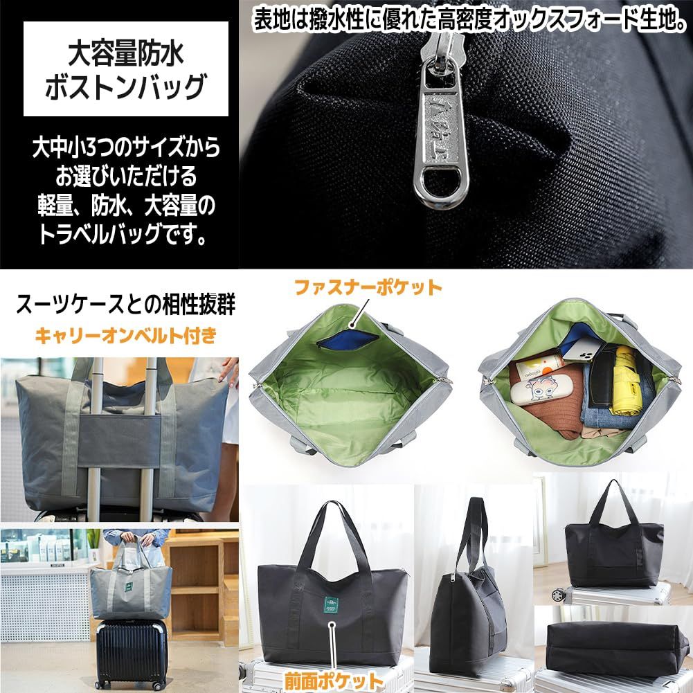 大容量 防水 トラベルバッグ ボストンバッグ 旅行 キャリーオン トートバッグ [FUPUTWO] (大 ブラック)