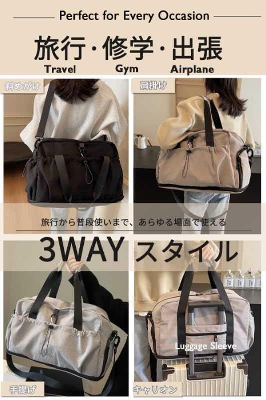 【多彩なシーンで活躍】 旅行はもちろん、トラブルや出張、ジム用のスポーツバッグ、修学旅行、マザーズバッグとしても最適です。撥水加工ナイロン素材なので、大切な品物を雨や汚れから守ります。