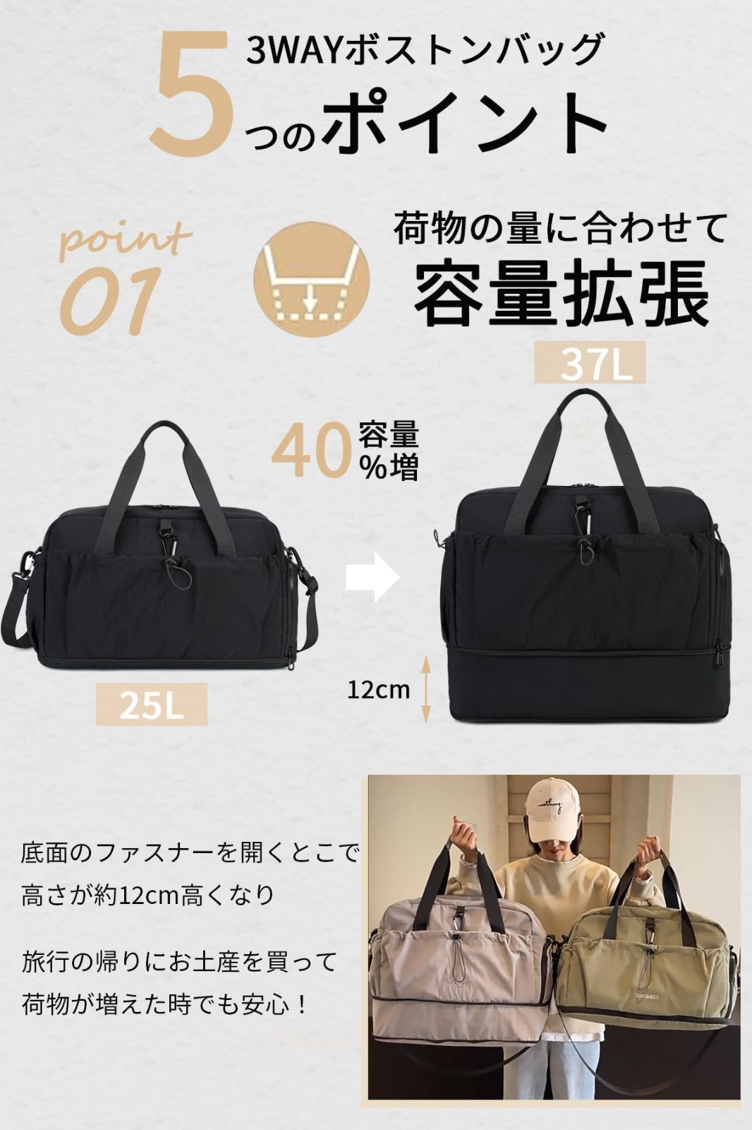 PAOIXEEL ボストンバッグ レディース メンズ 大容量 旅行 修学 拡張可 乾湿分離 軽量 キャリーオンバッグ 靴入れ 3way トラベルバッグ トートバッグ 防水 多収納 スポーツ 通学 1泊用 2泊3日 機内持ち込み
