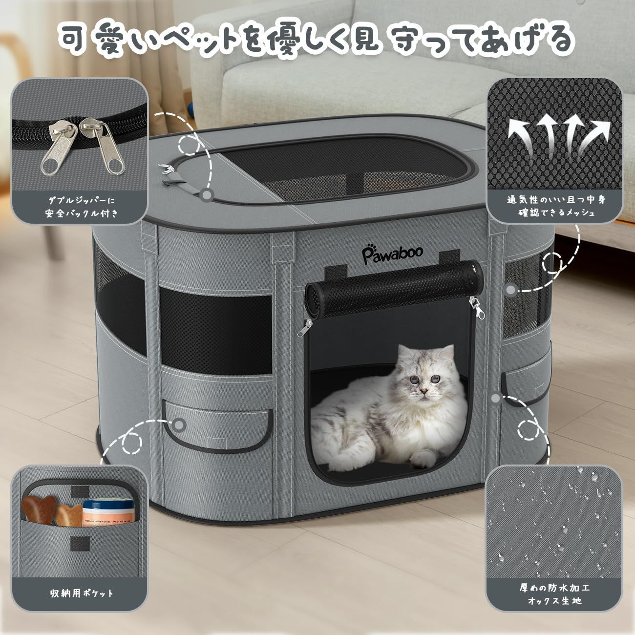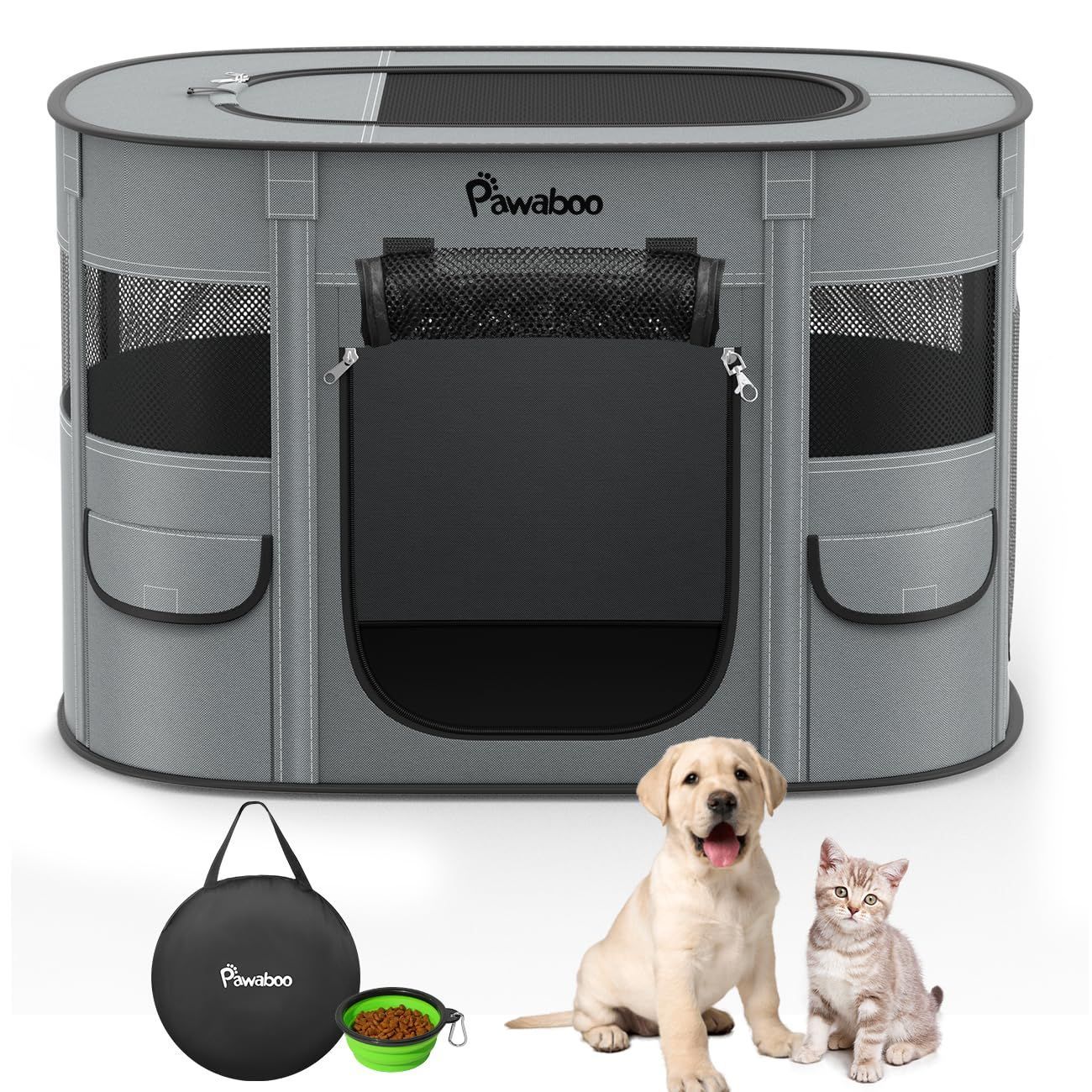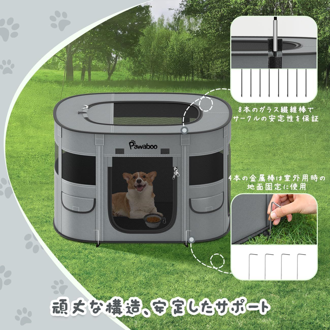 ペットサークル 折りたたみ Pawaboo 犬 室内 ペット ケージ メッシュ 扉付き 犬用 小型犬 組立簡単 防水 長方形 キャットサークル 引き裂けにくい ペットフェンス ファスナー式 出入り便利 犬 屋外サークル 哺乳期 分娩室 動物フレンドルーム うさぎ ケージ 収納袋付き 折り畳みボウル付き Mサイズ Charcoal Grey