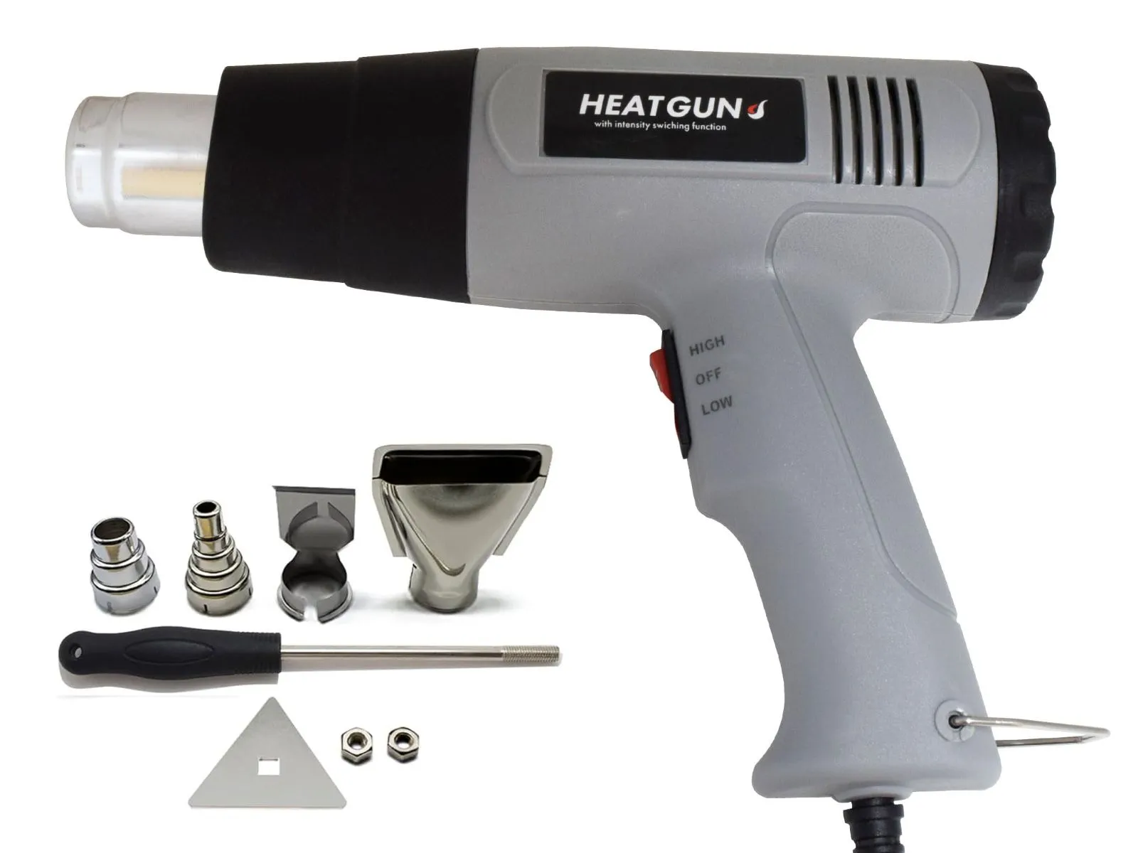 MTK ヒートガン ホットガン ヒートエアガン 強力 2段階風速 最大600℃ 4種類ノズル付 ホットエアガン 風量切替機能 熱風機 アタッチメント付 三角スクレーバー付 PSE適合品 日本語マニュアル付 DIY 修理 補修 乾燥 剥離 加工 HT1800-GY