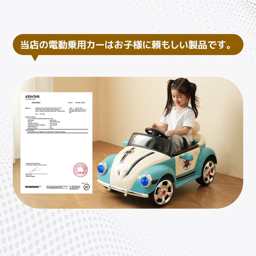 【フォルクスワーゲンからエンパワーメントを取得します。正規ライセンス商品で、本格的外観に多彩な機能を満載します。】電波法は守っている?不法電波で重要な無線通信を妨害した場合は5年以下の懲役または250万円以下の罰金が課せられます。技適マ-クらが付いていない無線機は違法になる恐れがあります。ご安心ください!当店の電動乗用カーは電波法と電気用品安全法適合の商品です。 電波法に従って技適マークを取得しています。PSEマークを取得しています。当店の電動乗用カーはお子様に頼もしい製品です。