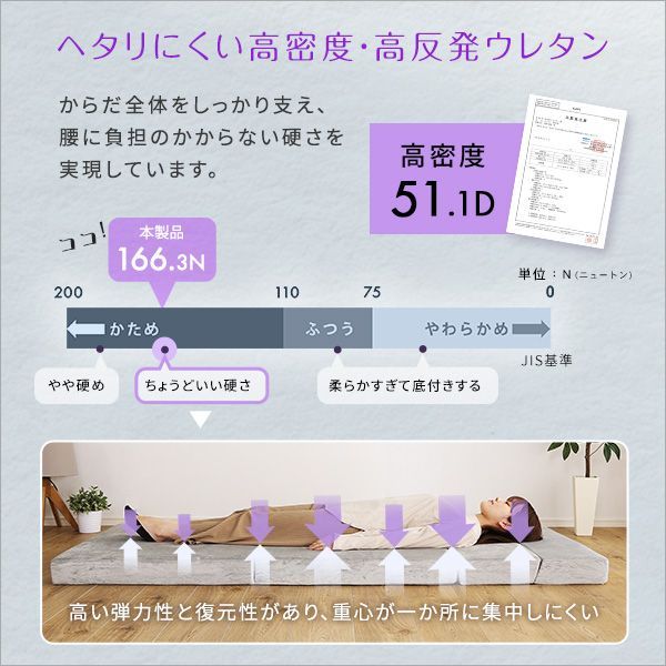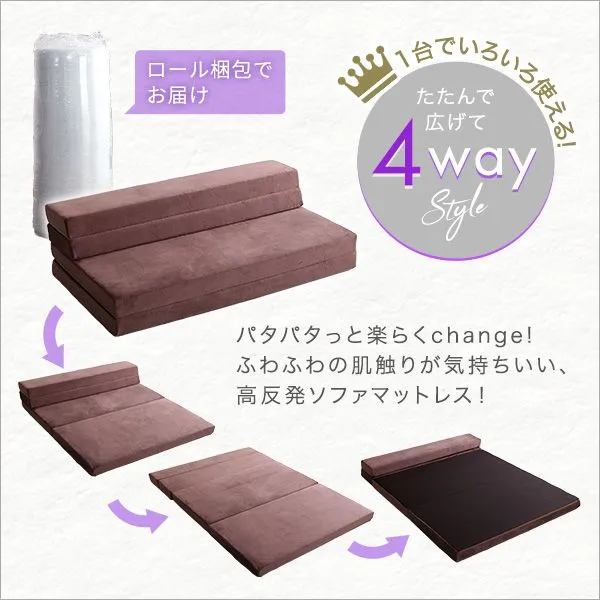 【商品説明】 4Wayスタイルの折りたたみソファマットレス ダブルサイズ! ふわふわの肌触りが気持ちい、高反発ソファマットレスです。 普段はローソファとして、無駄のないコンパクトデザインになります。 急な来客があってもこれ一つで対応できます。 10cmの厚みなので、からだに負担をかけにくく、床に直接敷いても底付き感がなく快適です! ※こちらの商品は沖縄離島配送不可となります。システムの都合上、表記が『都度見積もり』となっております。申し訳ありません。
