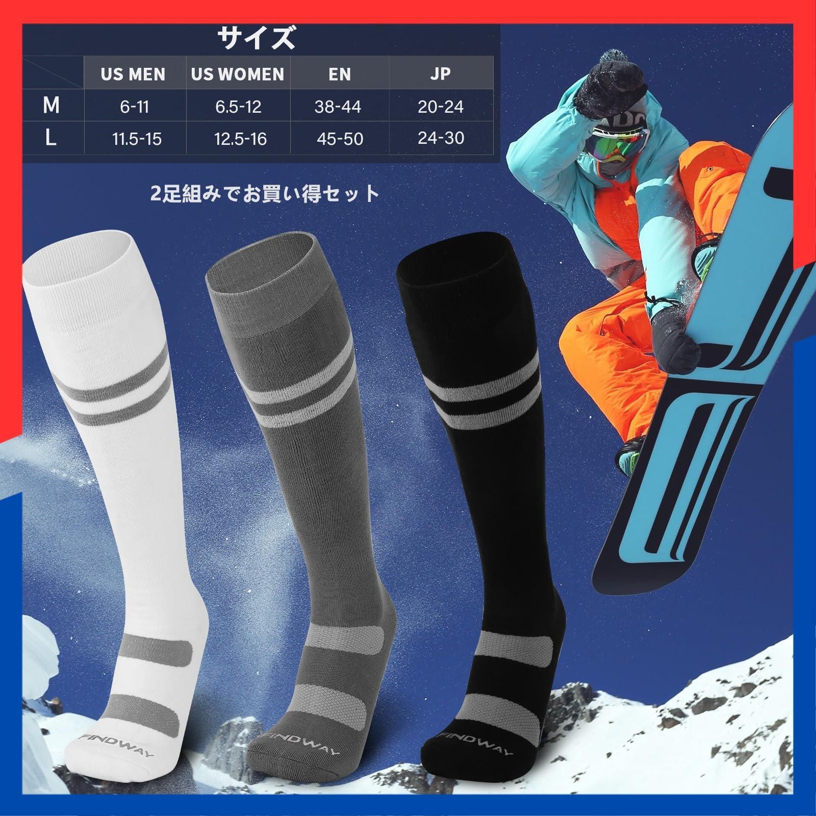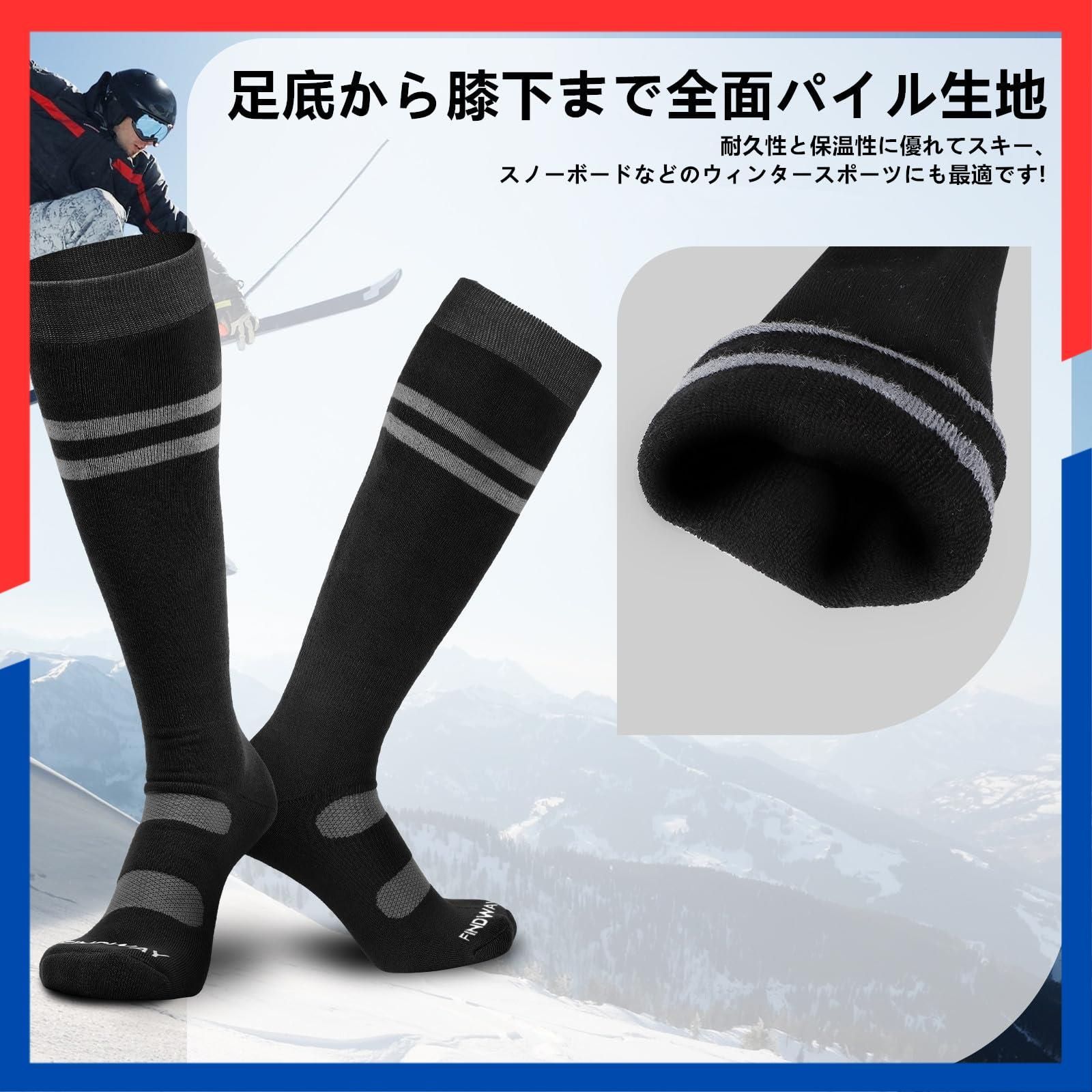 【特価商品】スキー靴下 スキーソック メンズ 抗菌防臭 吸湿速乾 防寒保温 パイル生地 【2足組】 厚手 スノボ 靴下 スノーソック スキー アウトドア [Findway] 冬用 サポート機能性 通気性 伸縮性 耐久性
