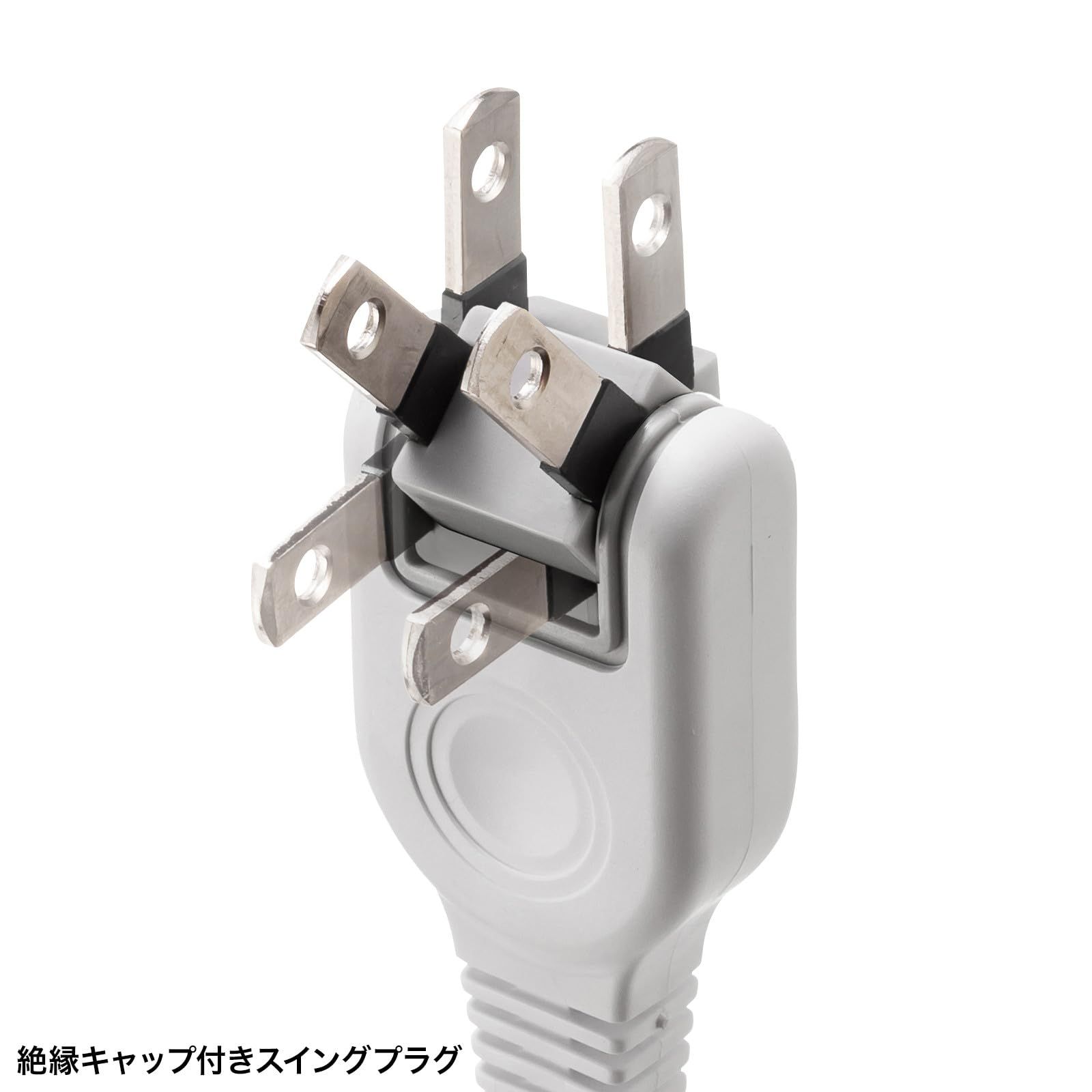 サンワサプライ 電源タップ ほこり防止シャッター 火災予防 4個口・2ピン・3m 配線しやすいスイングプラグ ホワイト TAP-TSH43N2