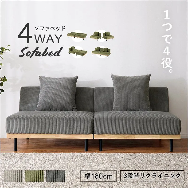 4WAYソファベッド LSF-4441 ソファベッド ソファ ベッド セパレート カウチ 背部3段リクライニング クッション2ヶ付 コーデュロイ生地 座面高2段階 ライトグレー グリーン ダークグレー 送料無料 【全3色】[8073]