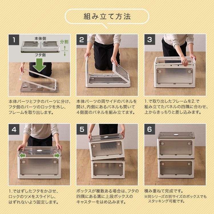 【商品説明】 多方向から取り出せる、5面開きで便利なコンテナボックス!奥にあるものも、簡単に取り出せるので積み重ねていても取り出し可能です!布団から小物まで沢山のものを収納できます!半透明で、中身がわかりやすいです!スライドロック式の簡単開閉扉になっています!様々な大きさに組み合わせられ、全サイズ積み重ねができます!リビングや寝室、様々な場所で活躍します!