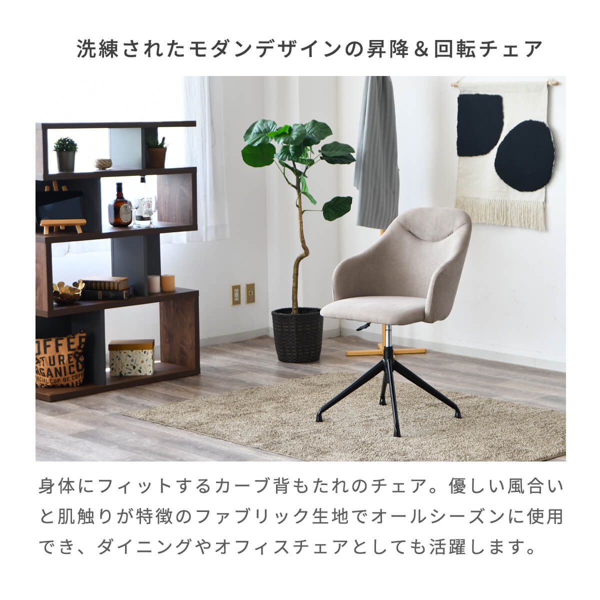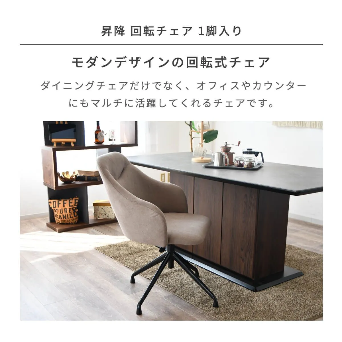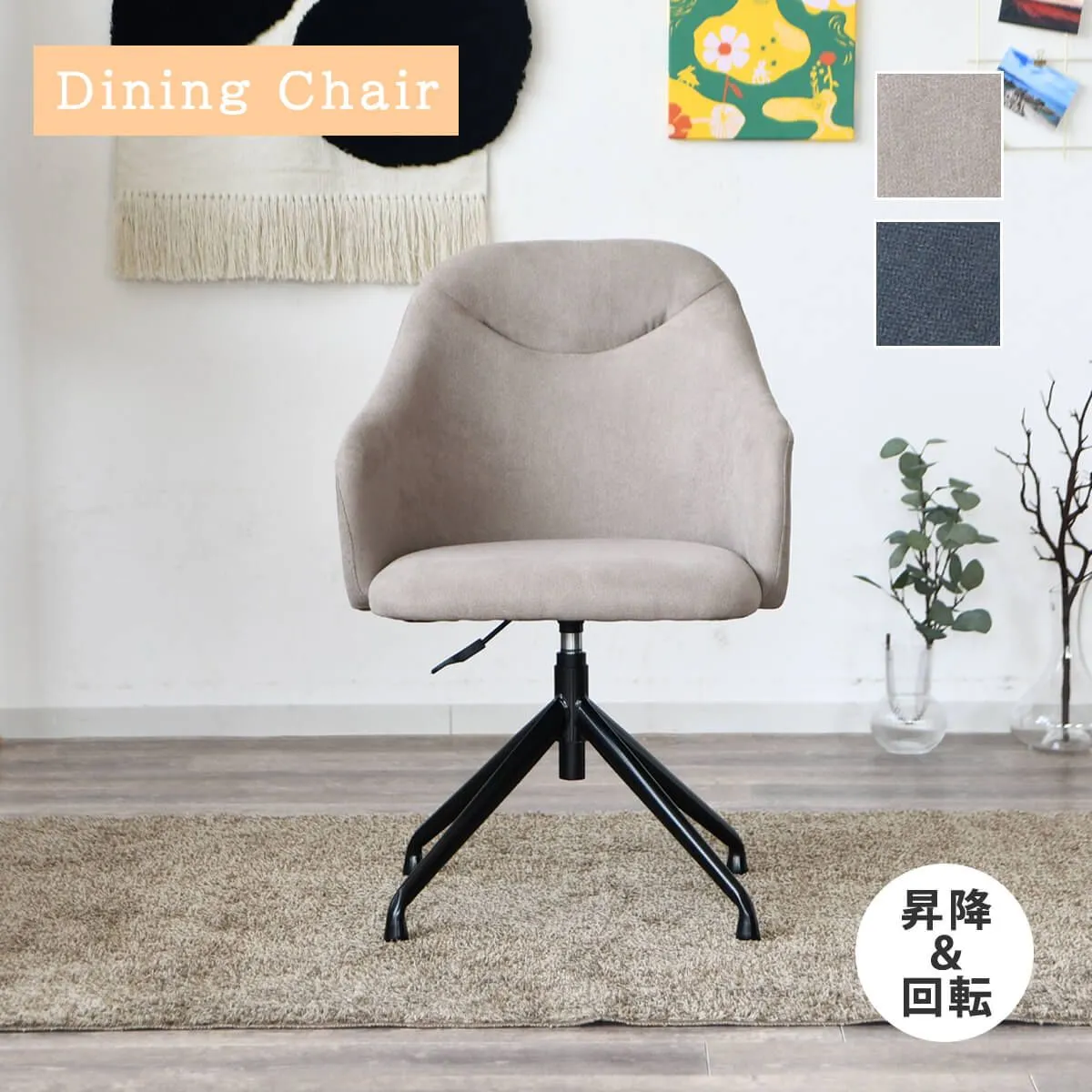 【新品】ダイニングチェア 回転チェア 昇降式 椅子 おしゃれ デスクチェア イス カフェチェア カウンターチェア オフィス ファブリック座面 アイアン脚 360° オールシーズン シンプル 北欧 モダン 幅57 「商:大」 「才:7」