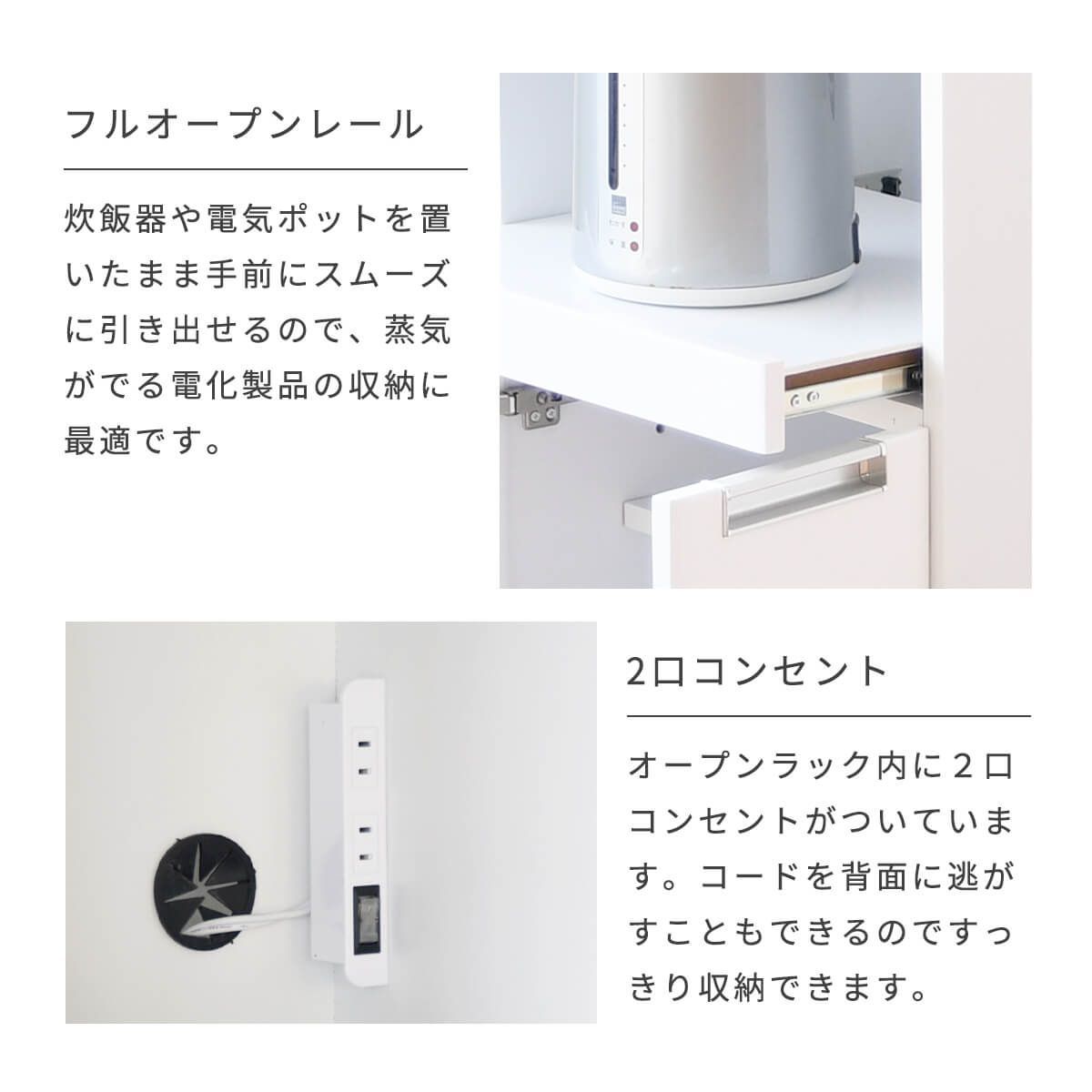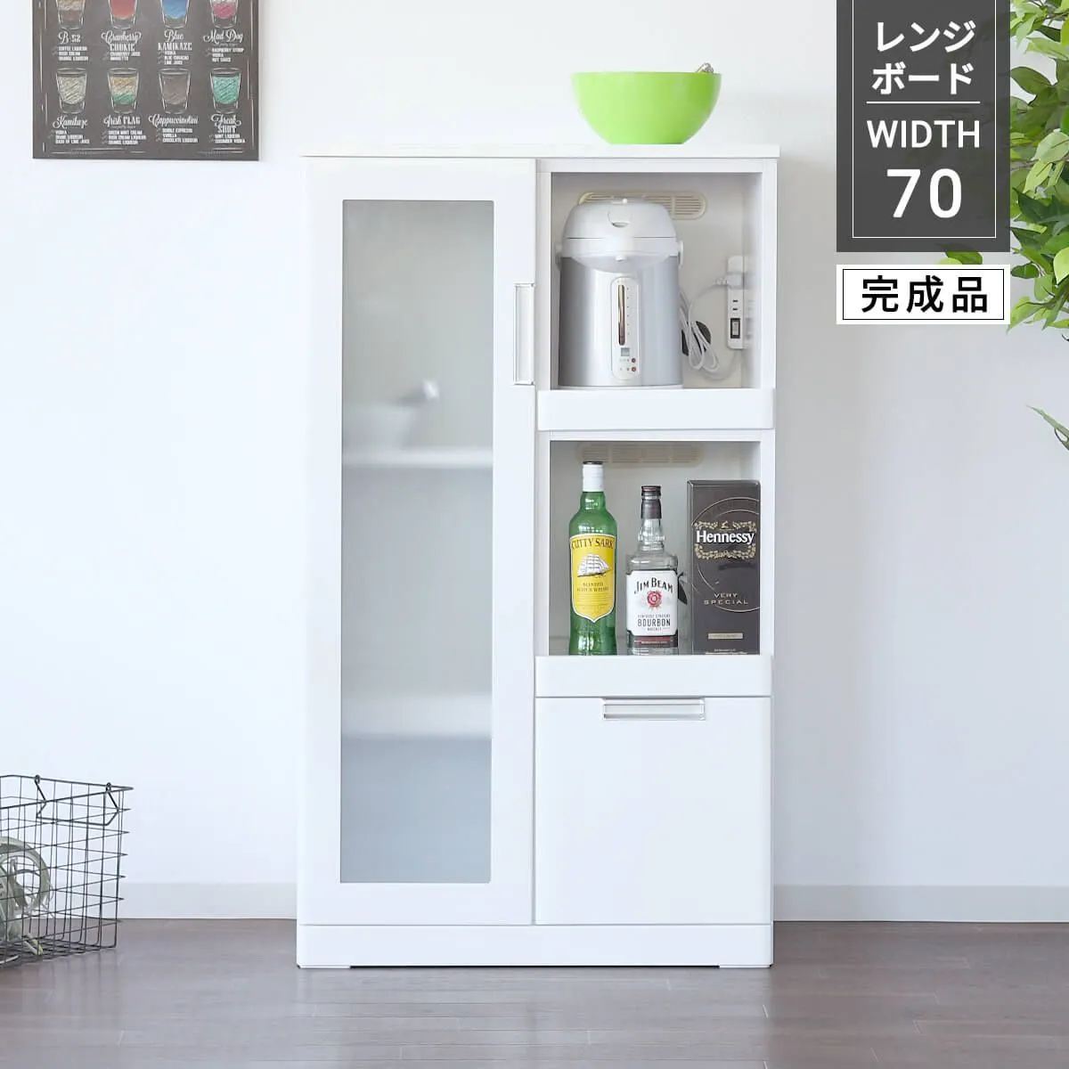 【新品】レンジ台 レンジボード キッチン収納 幅70cm 高さ120cm 完成品 エナメル塗装 カウンター収納 食器棚 ガラス戸 引出し スライドカウンター コンセント付き コンパクト ホワイト 鏡白 シンプル 北欧 幅70 「商:超」 「才:15」