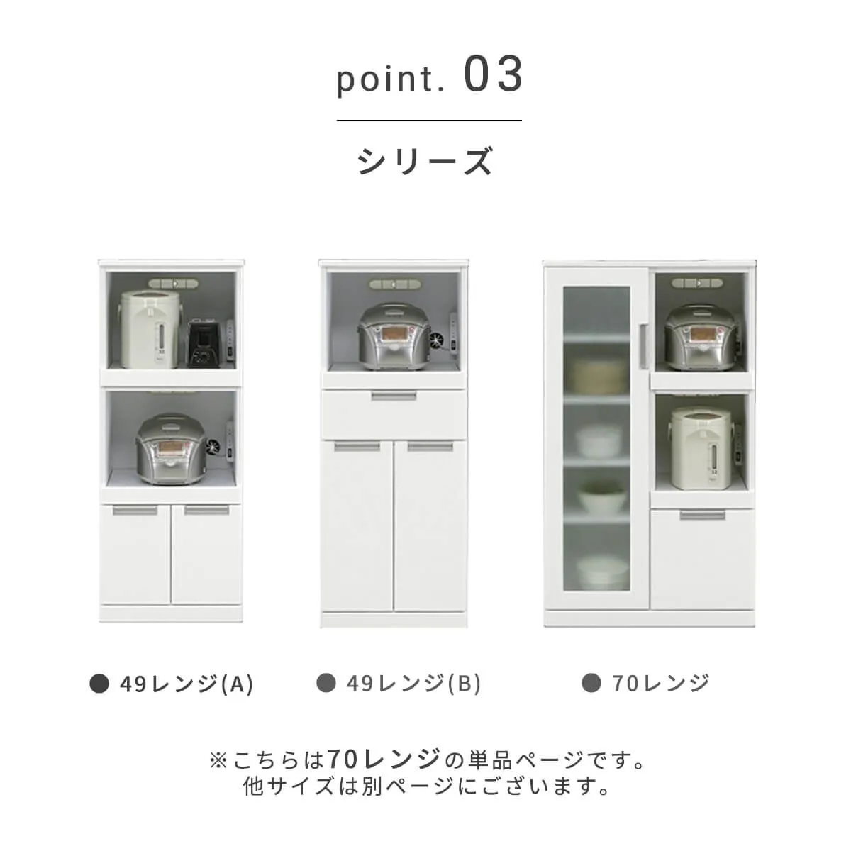 【大型商品】となります。 ※チケット購入の際は、地域がございますので、ご注意ください。 ※※※※※※※※※※※※※※※※※※※※※※※ コンパクトな設計の中に便利機能を集約したレンジ台 ────────── 商品名:Nアクア70レンジ台 ────────── 品 番:1239 カ ラ ー:[ ホワイト](全1色) 素 材:MDF(エナメル塗装) 生 産 地:中国 サ イ ズ:700mm(幅)×430mm(奥行)×1200mm(高さ) 梱包サイズ:730mm(幅)×460mm(奥行)×1230mm(高さ) ────────── 備考 ────────── 完成品