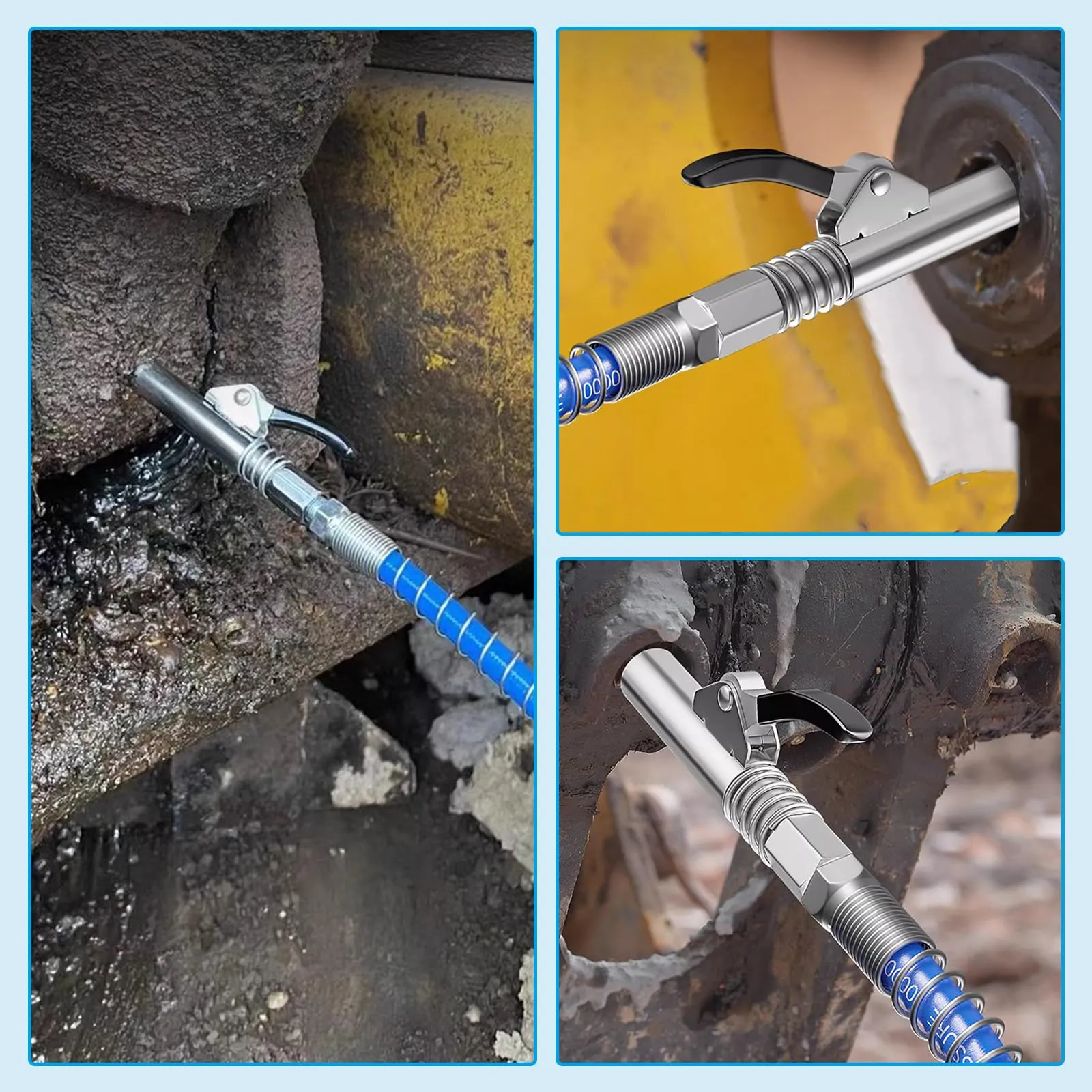 【プレミアム品質】このグリースガンの口金は金属製で、折れたり曲がったりしにくく、長寿命です。ノンスリップラバーハンドルは、より多くのグリップを提供することができます。ゴム製のハンドルは、より良いグリップとレバレッジを提供します。