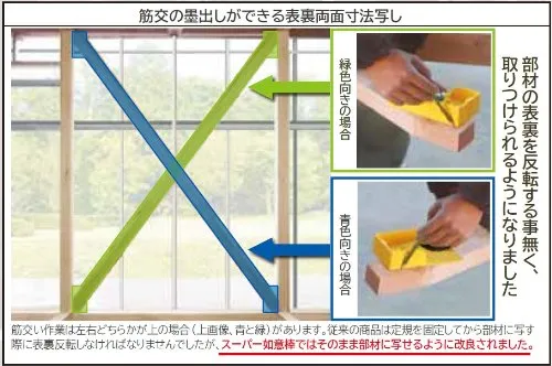 筋交い定規、バカ定規、仮止め治具としても使用できる