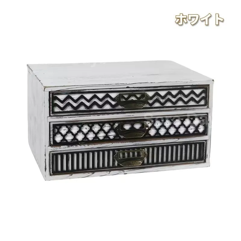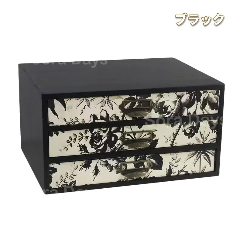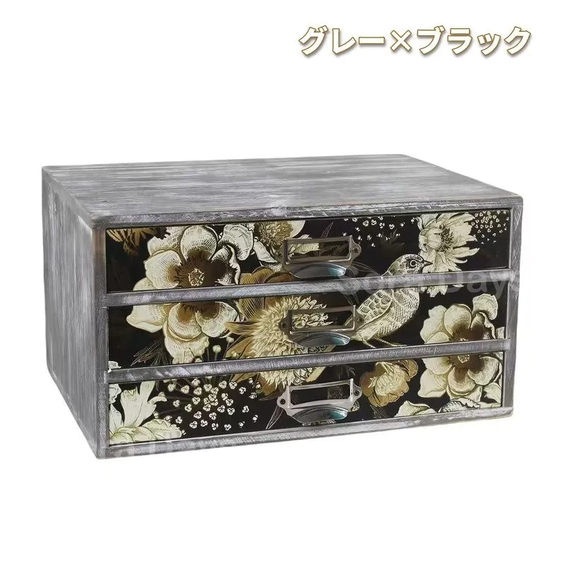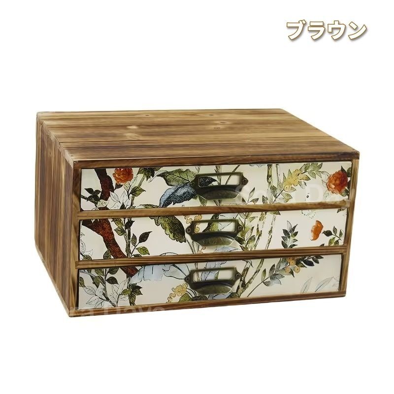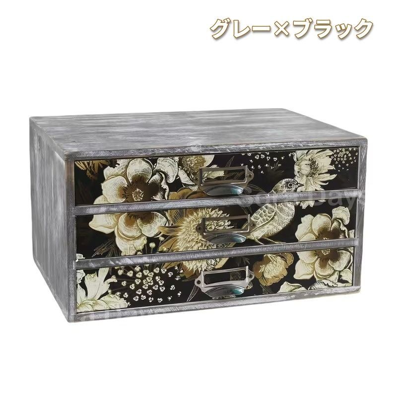 チェスト キャビネット 花柄プリント 木目調 ヴィンテージ風 ナチュラル おしゃれ インテリア 北欧 収納 卓上 3段引き出し シャビー ラスティック 幾何学模様 選べるデザイン ブラック グレー ブラウン ホワイト 木製 34×24.5×18.2cm