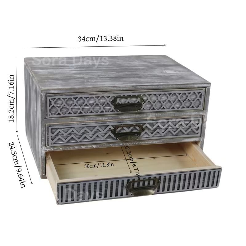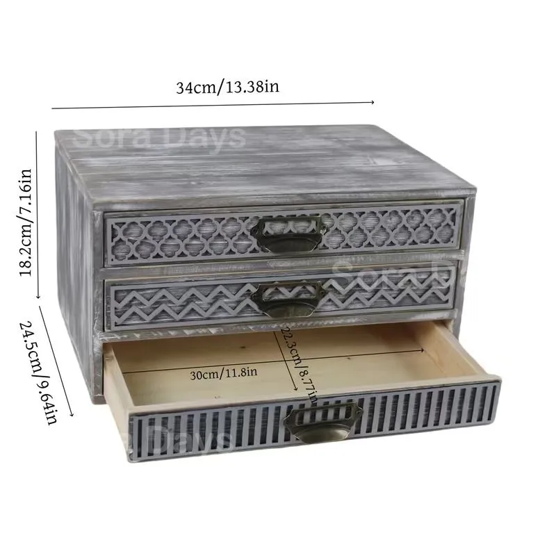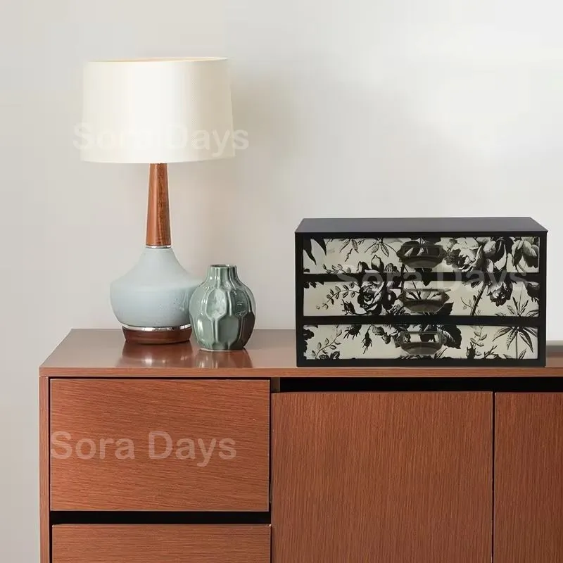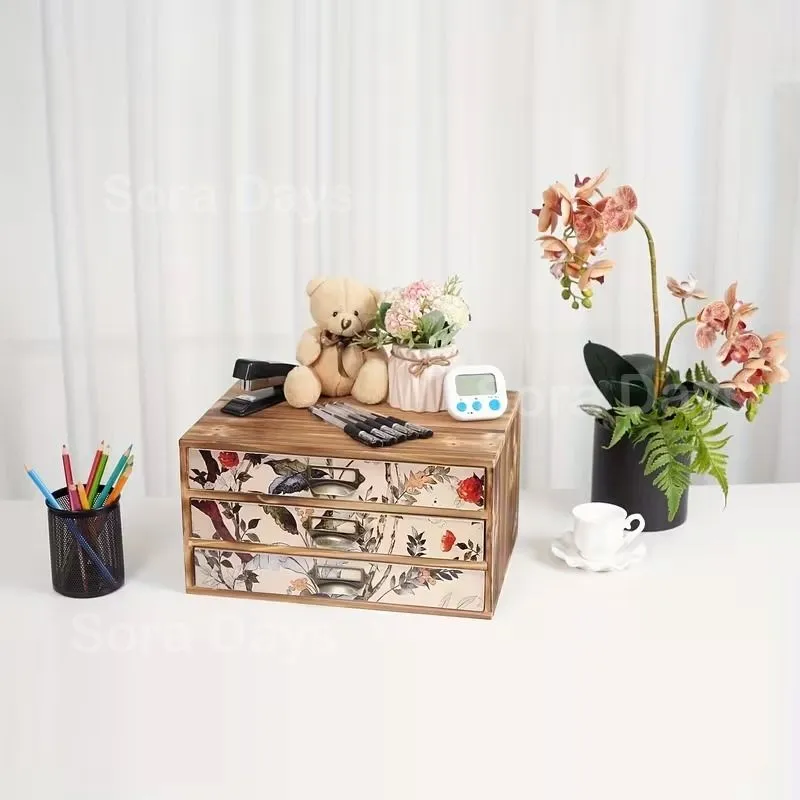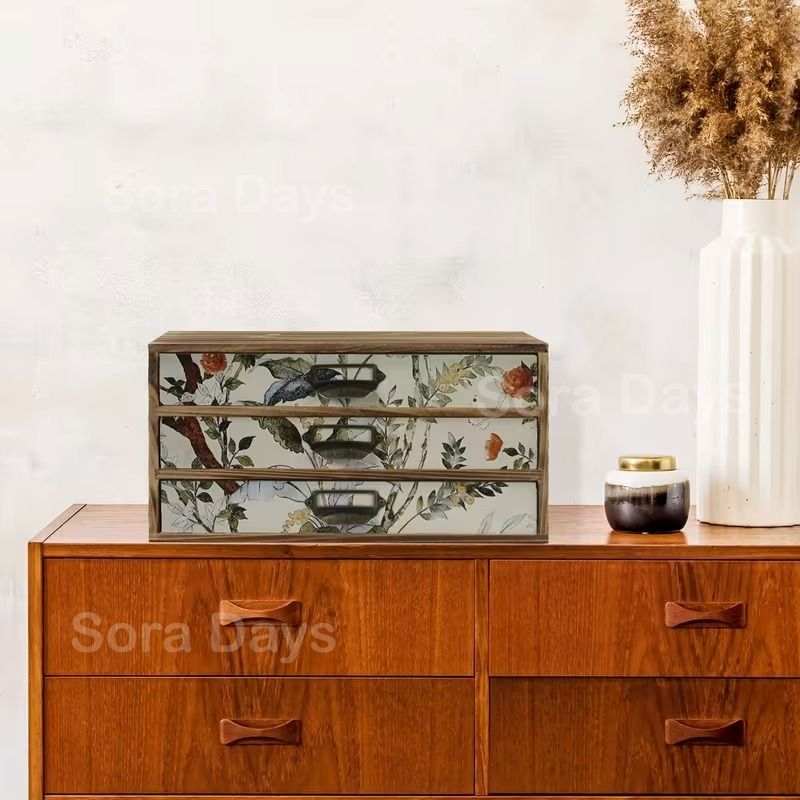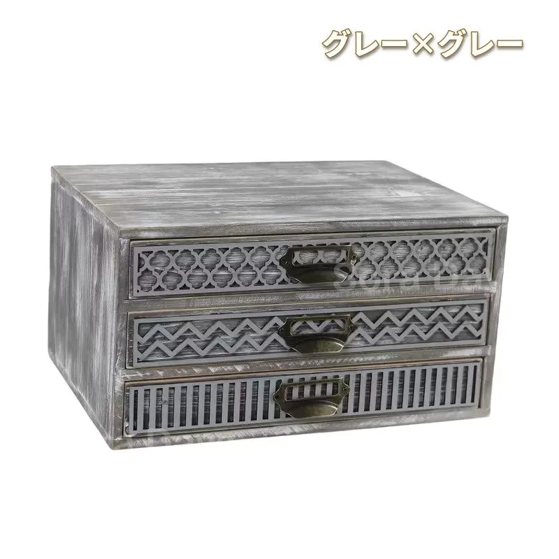 チェスト キャビネット 花柄プリント 木目調 ヴィンテージ風 ナチュラル おしゃれ インテリア 北欧 収納 卓上 3段引き出し シャビー ラスティック 幾何学模様 選べるデザイン ブラック グレー ブラウン ホワイト 木製 34×24.5×18.2cm