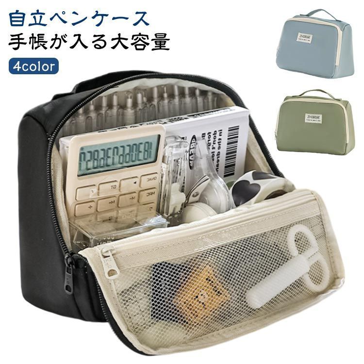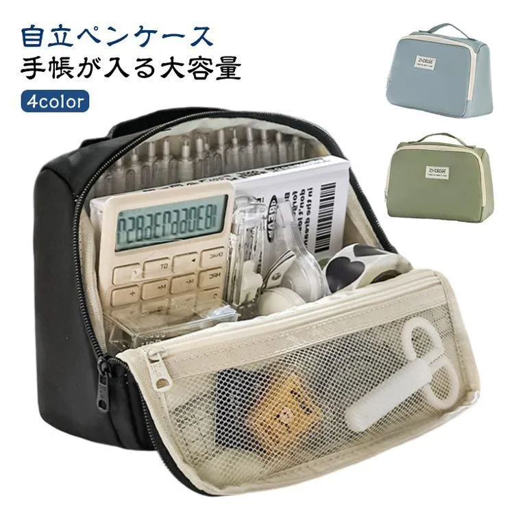 ペンケース 手帳が入る 多ポケット ペンスタンド 縦型 自立 大容量 筆箱 筆入れ ふでばこ 文房具収納 整理 多機能 シンプル おしゃれ かわいい たくさん入る 中学生 小学生 高校生