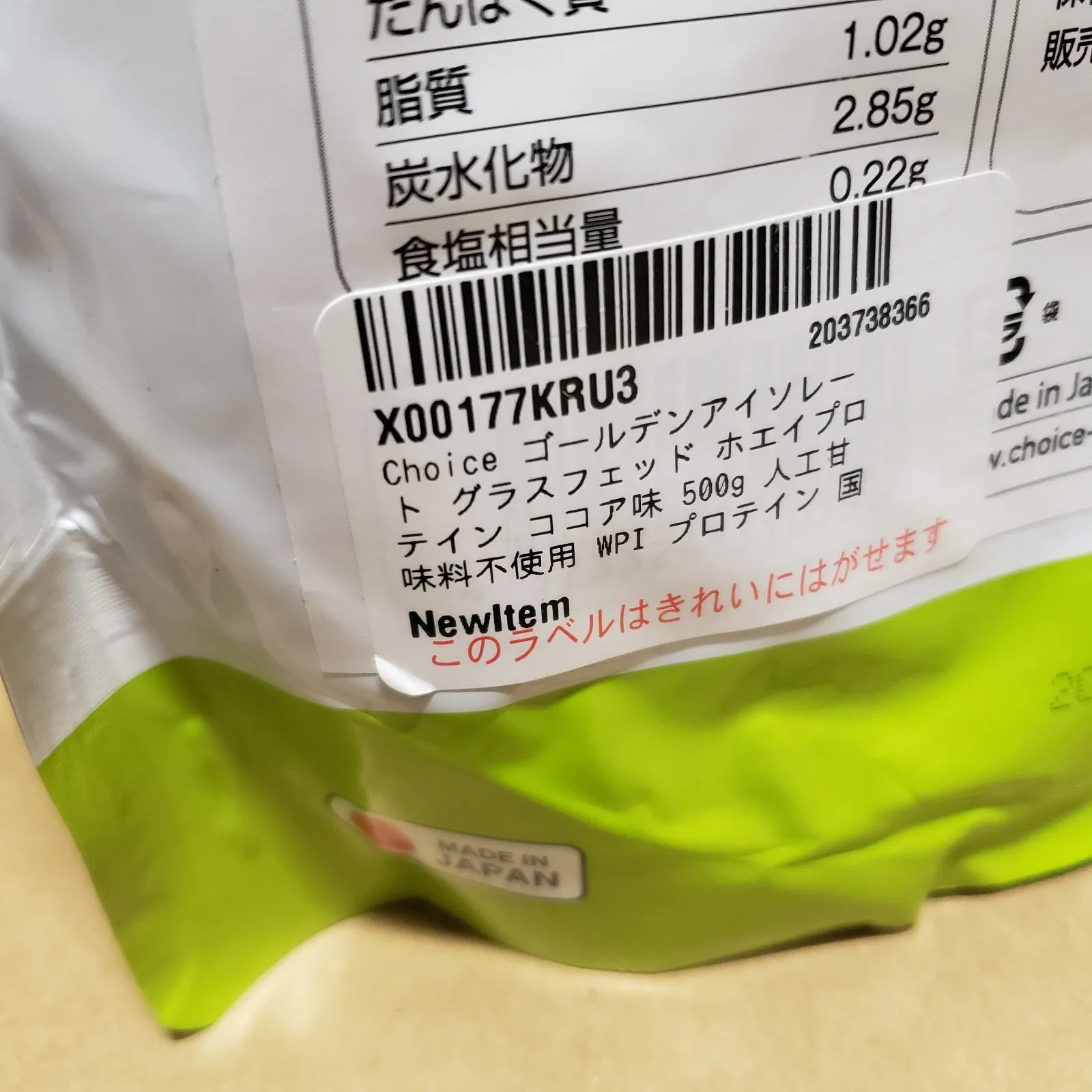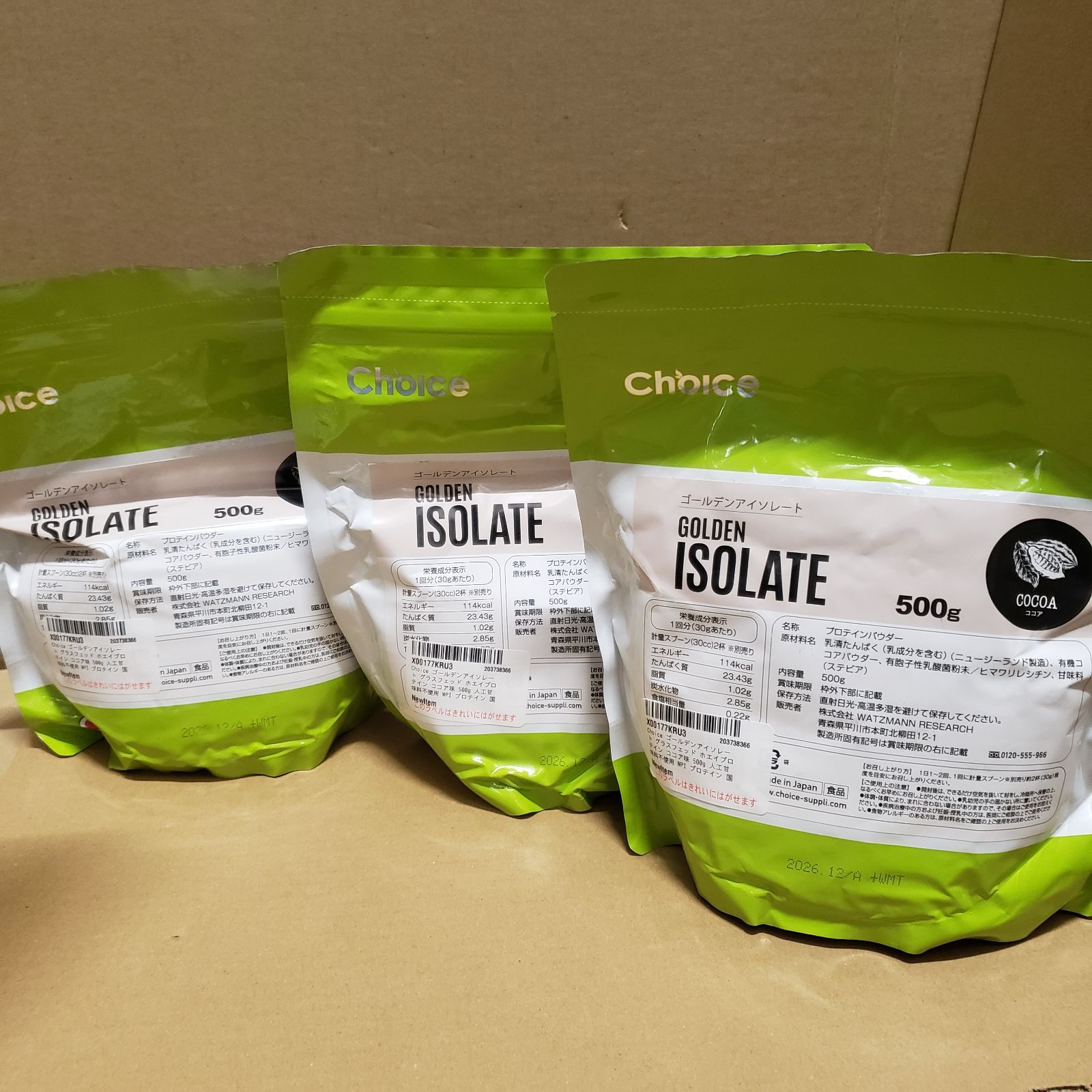 新品未開封 Choice ゴールデンアイソレート グラスフェッド ホエイプロテイン ココア味 500g *3袋セット