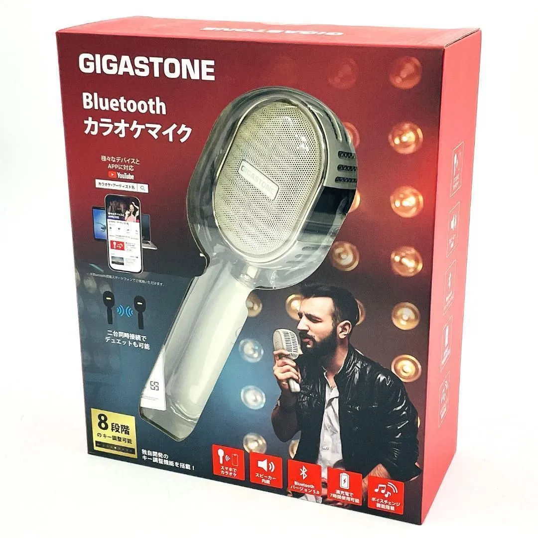 ■ GIGASTONE(ギガストーン)製 Bluetoothカラオケマイク「KMH-9550G」です。 スマートフォンやタブレットとBluetooth接続し、YouTubeやカラオケアプリで手軽にカラオケを楽しめます。