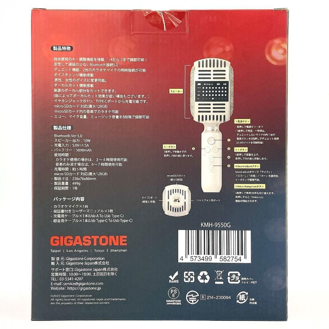 【新品未開封品】GIGASTONE Bluetooth カラオケマイク KMH-9550G スピーカー内蔵 スマホ対応 2台同時接続可能 ホワイト