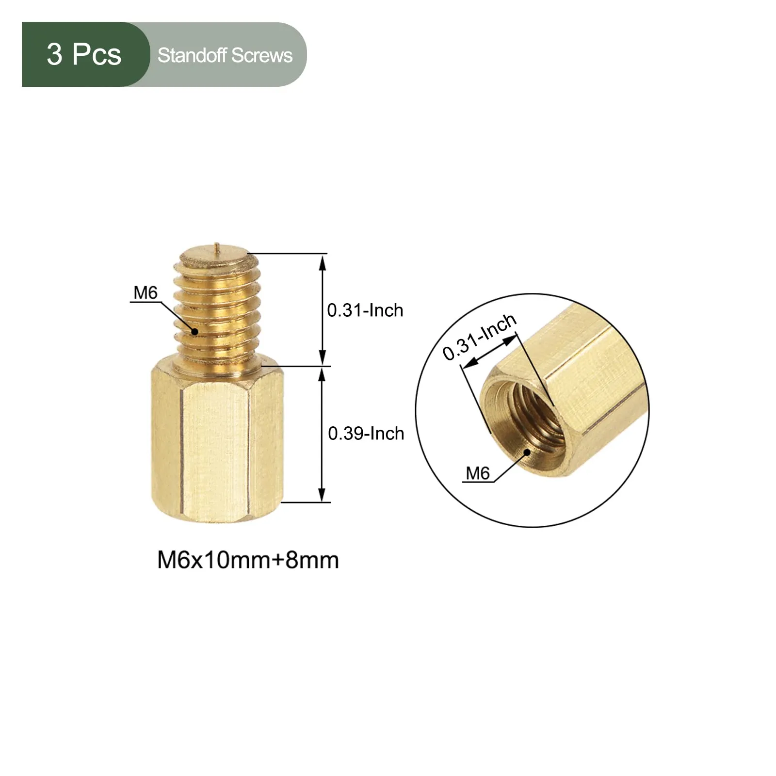 YOKIVE 3個入り M6 スタンドオフねじ 真鍮 六角 PCBスタンドオフ 一貫した高さ マザーボードに最適 (ゴールドトーン 10mm+8mm)