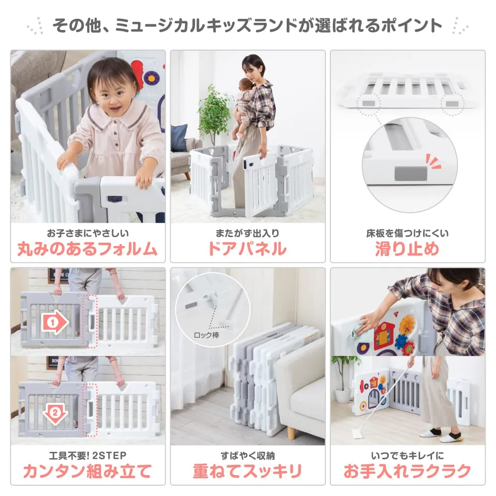 日本育児 ベビーサークル ミュージカルキッズランドDXⅡ ホワイト&グレー