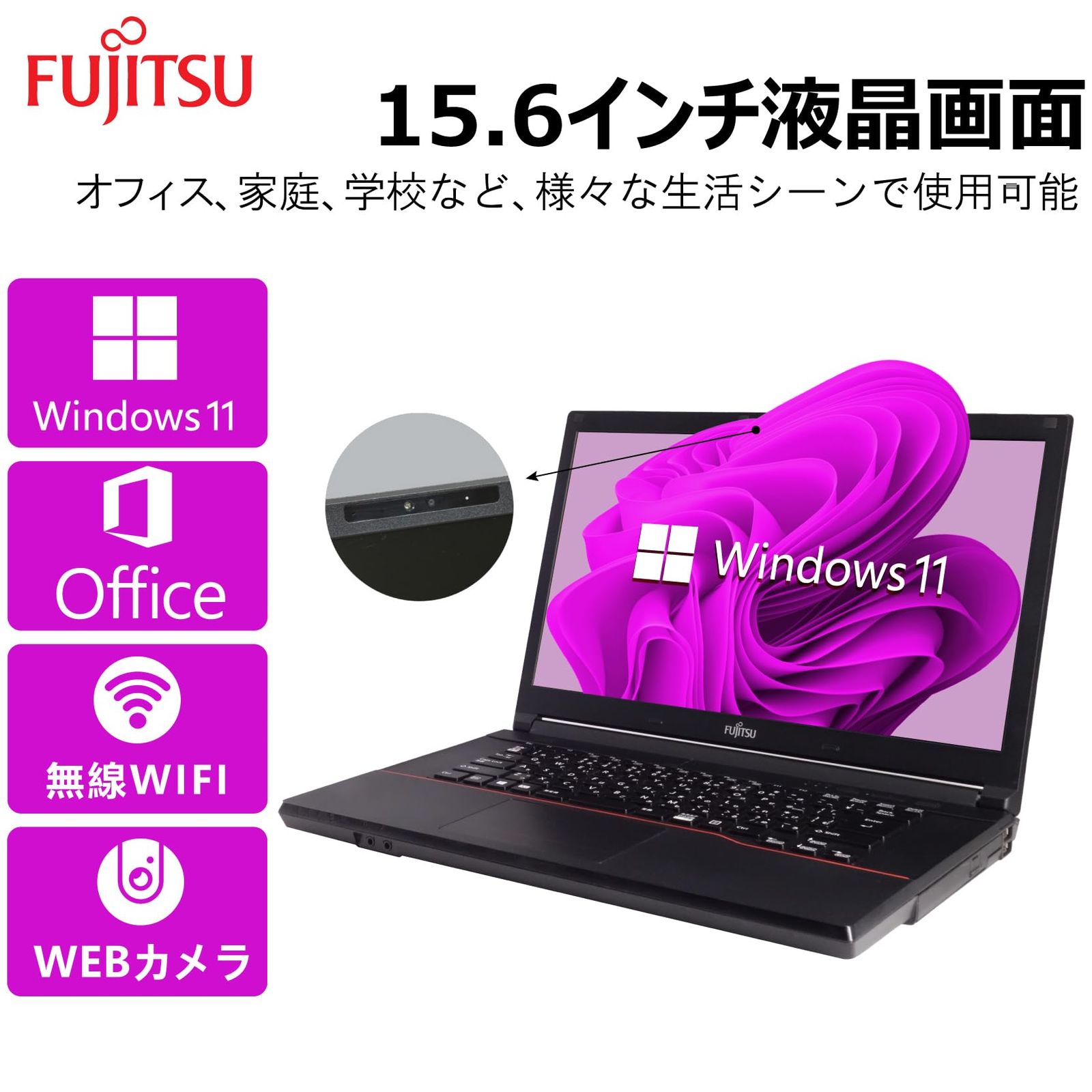 新品 【整備済み品】 【WEBカメラ搭載 & CPU:爆速第3世代Core i7搭載】富士通 ノートパソコン ハイスペック FMVシリーズ/Office搭載/Win 11/15.6型/無線WIFI/USB 3.0/DVDドライブ付き/初期設定済 パソコン ノー