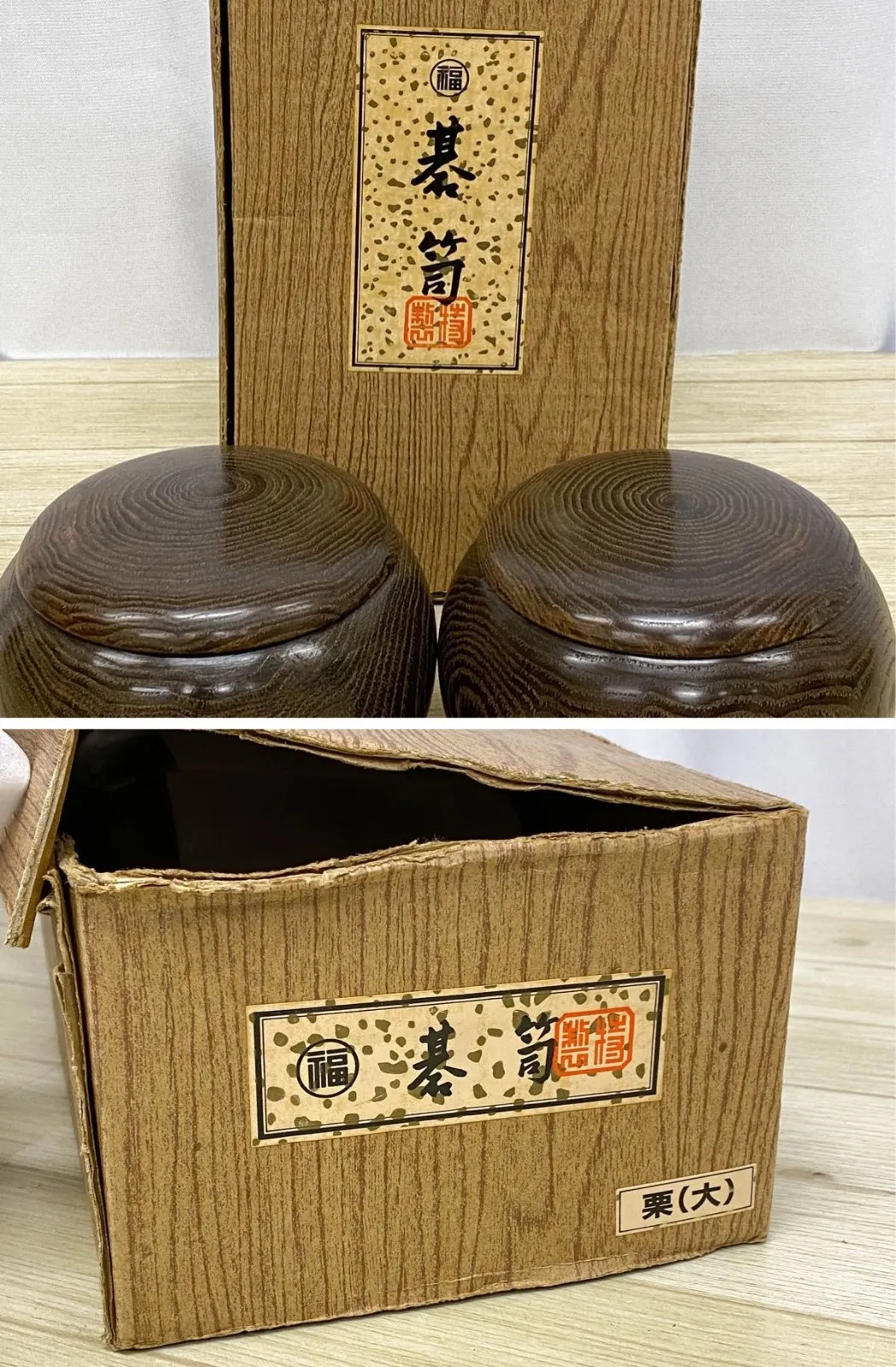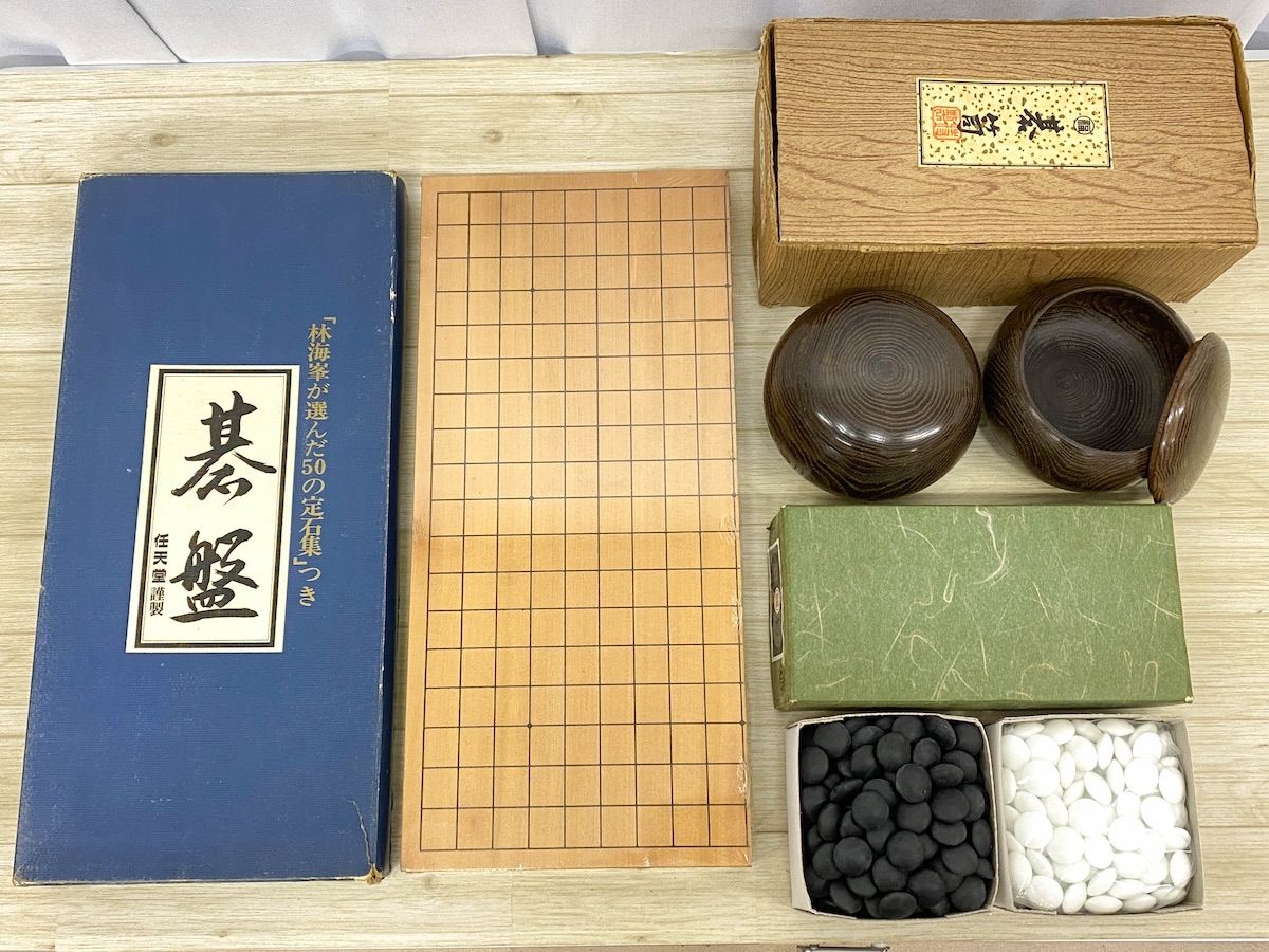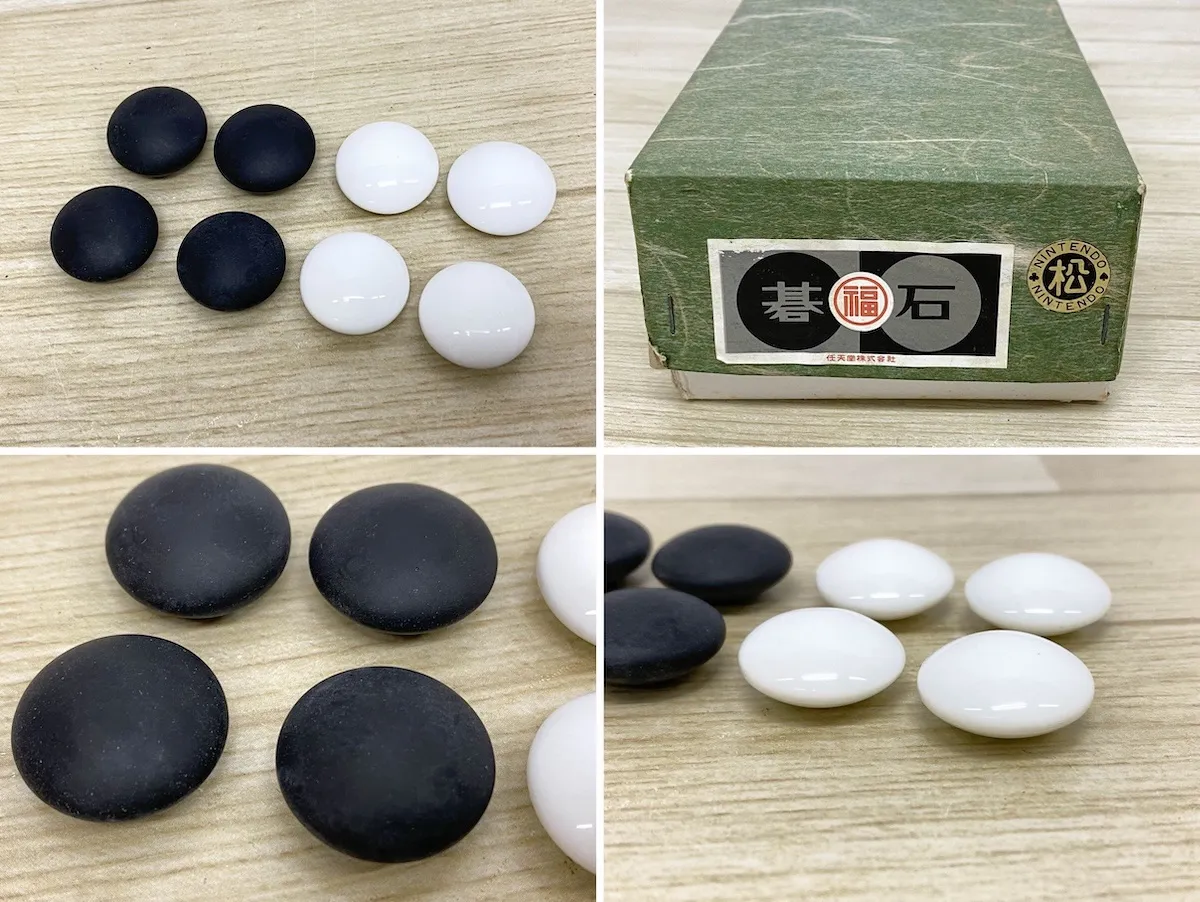 ■商品概要 任天堂による、碁盤・木製碁笥・碁石が揃った囲碁セットです。大手メーカーのアンティークな品で、初心者から愛好家の方まで幅広くお使いいただける対局道具です。 未使用の保管品ですが、碁盤はビニールシールが貼られた状態ですが、蝶番にサビ、シールに破れが見られます。 碁石の白は概ね美品ですが、黒に1個欠けがございます。また、各外箱には傷汚れや破れがございます。 木製の碁笥は質感が良く、全体として揃いの良いセットです。実用はもちろん、コレクションや懐かしのレトロアイテムとしても価値のある一品です。 画像にあるお品が出品の全てとなります。状態の詳細は画像にてご確認ください。