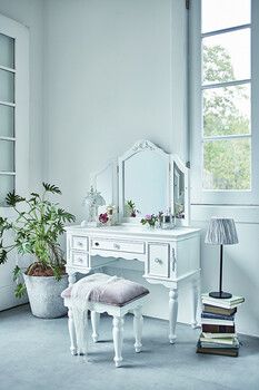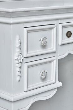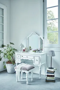 エレガントな彫刻とねこ脚、古くから使い込んだような味わいのアンティーク風ドレッサーセット。