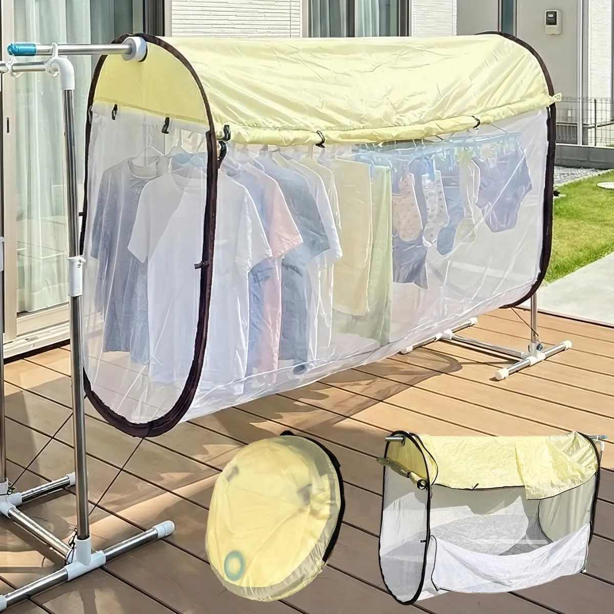 ShareFunn ナナガード 洗濯物カバー 360°カバー 洗濯物 目隠し ベランダ ネット 虫除け 雨よけ 物干し 屋外 虫よけネット あめよけシート 防虫 防水 紫外線カット カメムシ 花粉 虫 外 黄砂 鳥害 梅雨 PM2.5 対策 通気性 雨よけカバー 洗濯日和 コンパクト 折り畳み