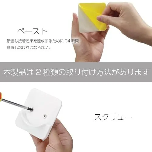 5.適用範囲及び注意事項:ABS材質の支持板は防水で頑丈で、特に硬質タイル、ガラス、大理石、金属及び滑らかな木質表面に両面テープを用いて固定するのに適しているが、石膏、セメント、壁紙又は塗装壁面などの粗面には釘を選んで固定しなければならない。