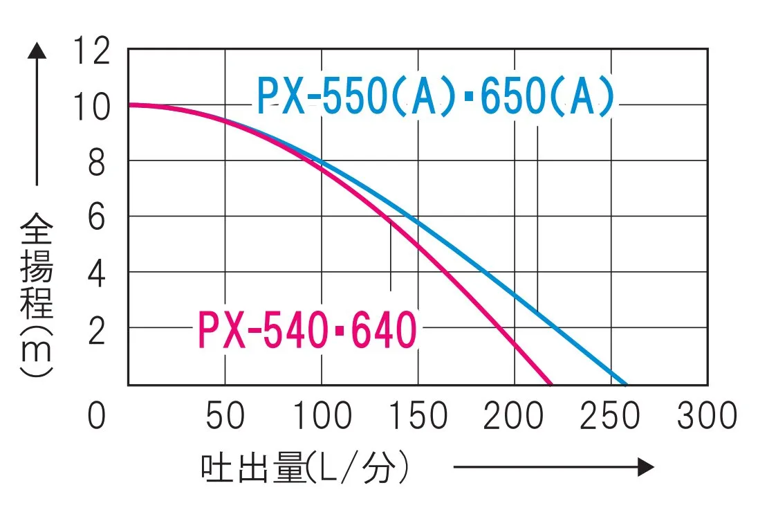 ポンプ:吐出口径:40mm(1 1/2″) / ポンプ:全揚程:10m(0.1MPa)/ポンプ:最大吐出量:220リットル/min