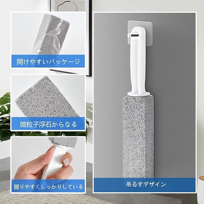【商品説明】 トイレ掃除は100%天然の軽石なので、環境に優しく、人、動物、植物にとって無毒、無臭で安心安全に汚れを除去できるので、他社の水垢落とし尿石落としバブル商品よりも好ましい業務用ツールです。トイレブラシと隙間ブラシが2本ずつ付いているので、また、ブラシの形は自分の好みに合わせて自由自在に切り取ることができ、トイレの石灰汚れに簡単に対処できます。握りやすく掃除も簡単です。便利なハンドルで、便器の頑固なリングや水の汚れをきれいにして、手を汚さずに掃除できます。 ハンドルの上部に穴があり、使用後も簡単に収納できます。 ハンドルの上部に穴があり、使用後も簡単に収納できます。